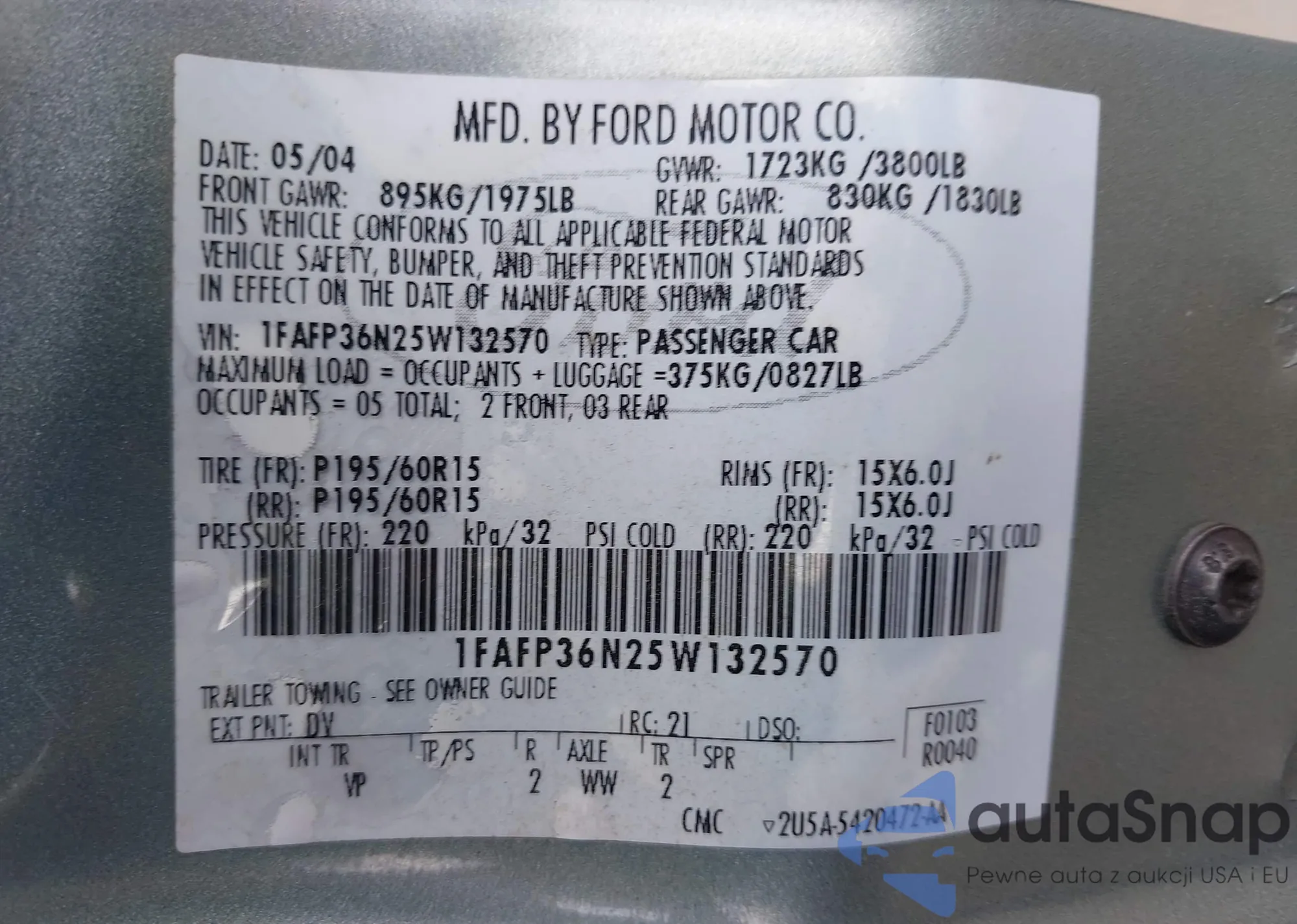 LOT: 42447858 VIN: 1FAFP36N25W132570