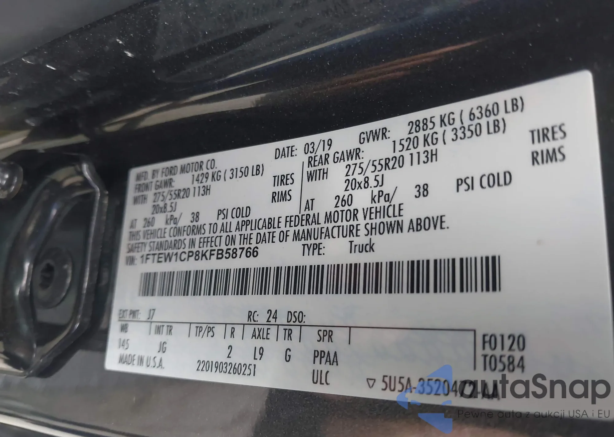 • VIN 1FTEW1CP8KFB58766