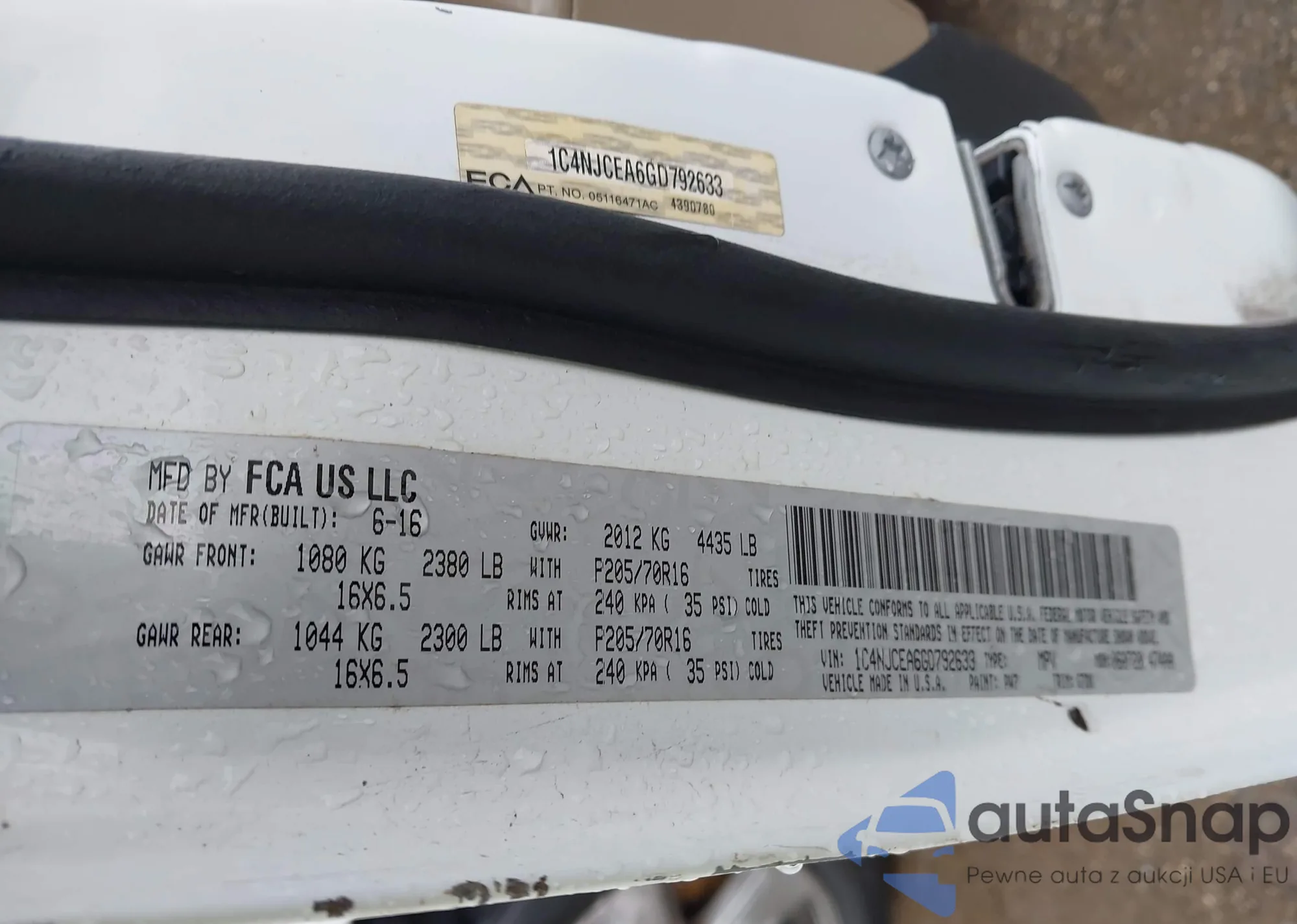 • VIN 1C4NJCEA6GD792633
