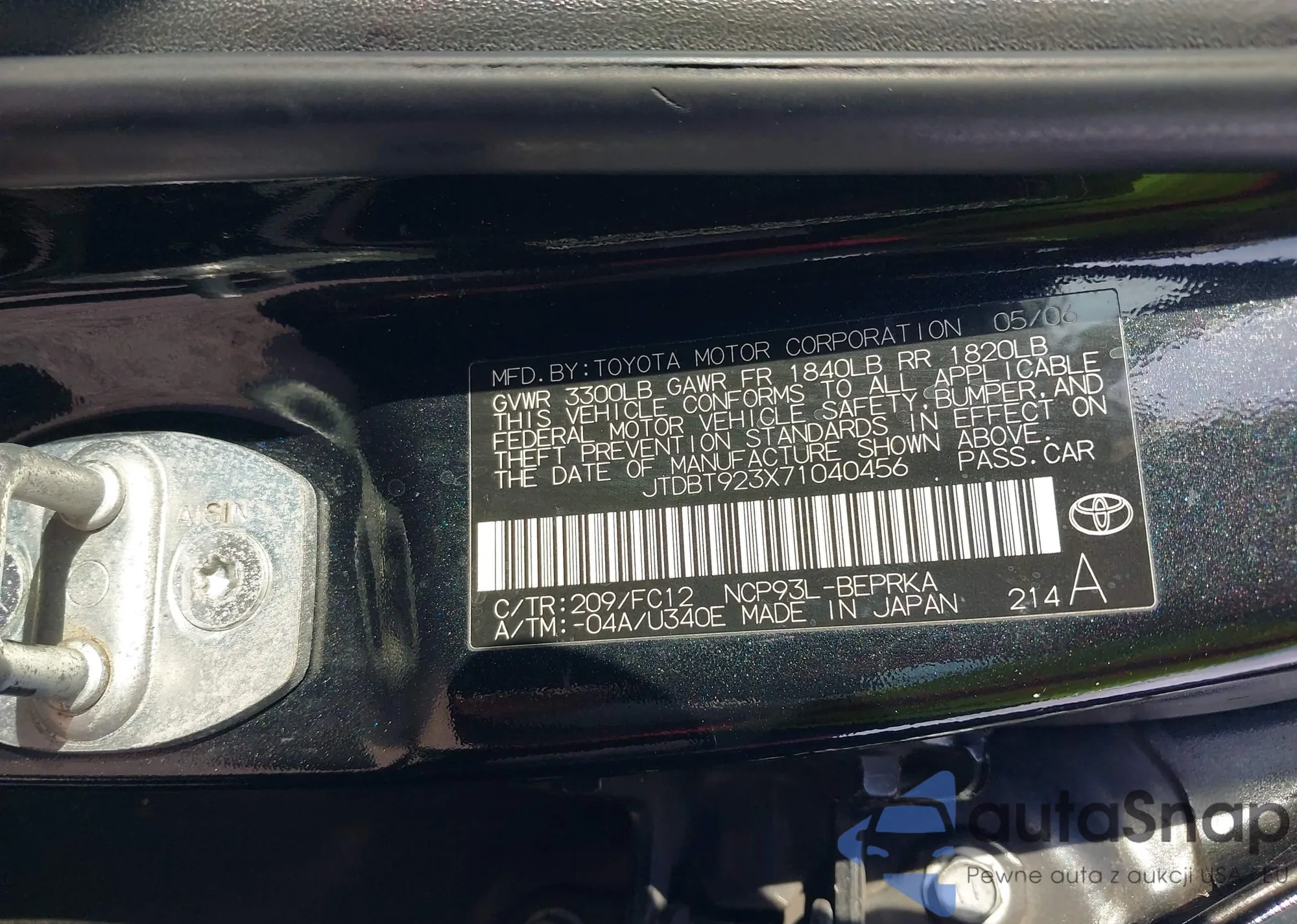 • VIN JTDBT923X71040456