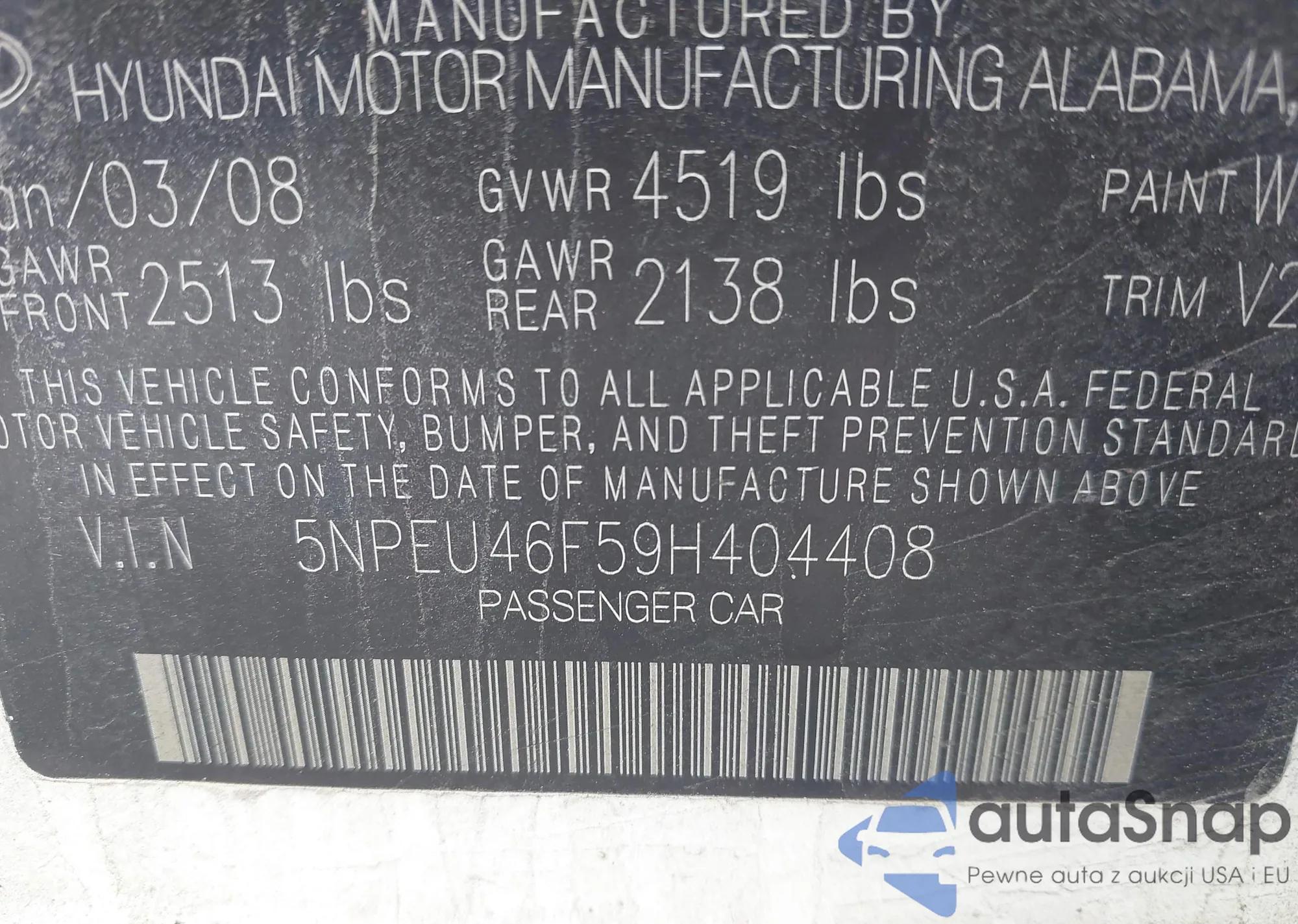 LOT: 42661753 VIN: 5NPEU46F59H404408