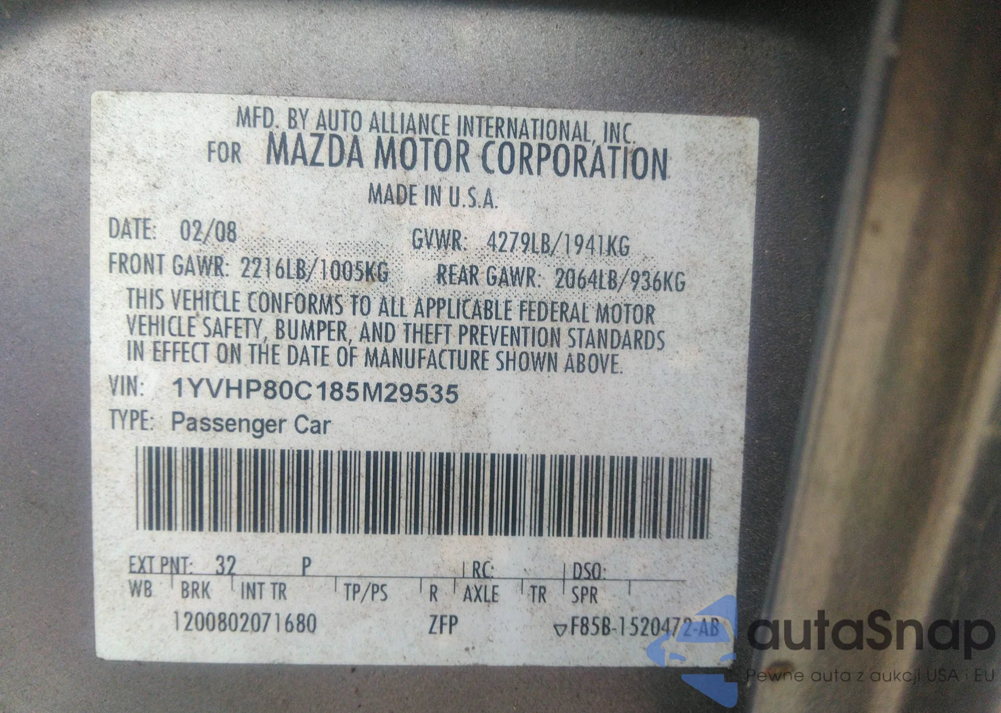 • VIN 1YVHP80C185M29535