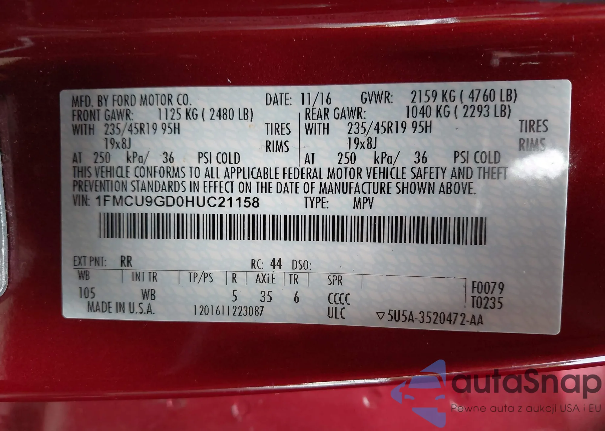 • VIN 5J8TB4H54DL002029