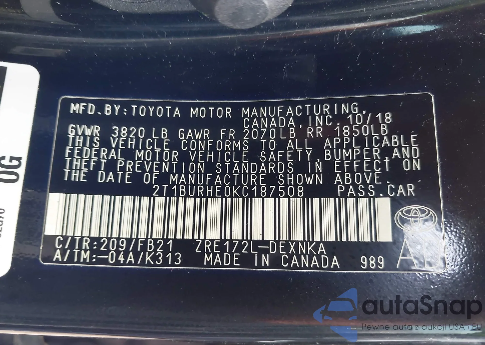 • VIN 2T1BURHE0KC187508