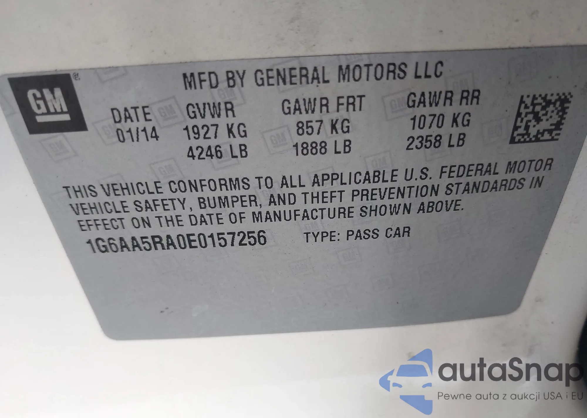 LOT: 42541977 VIN: 1G6AA5RA0E0157256