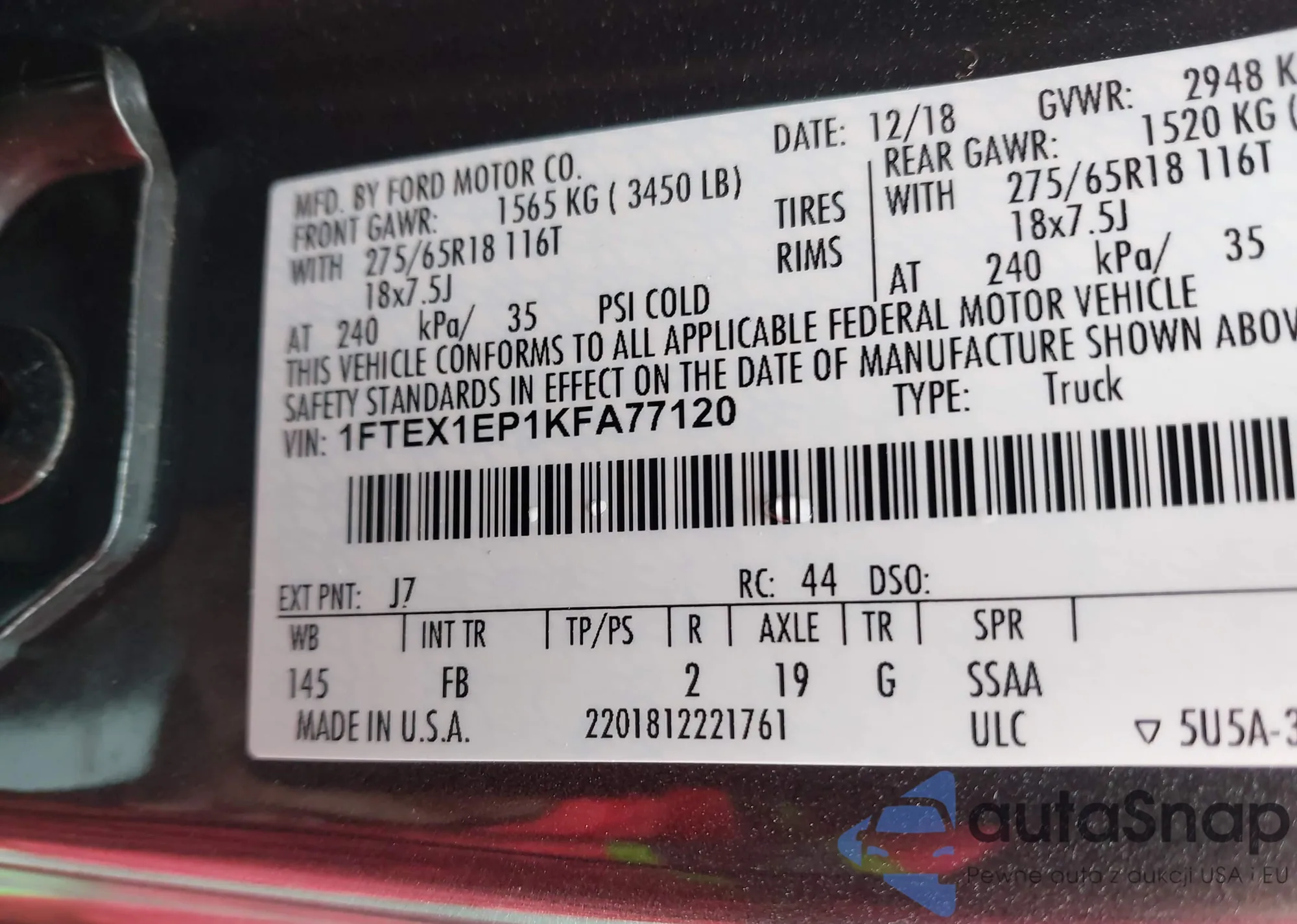 • VIN 1FTEX1EP1KFA77120
