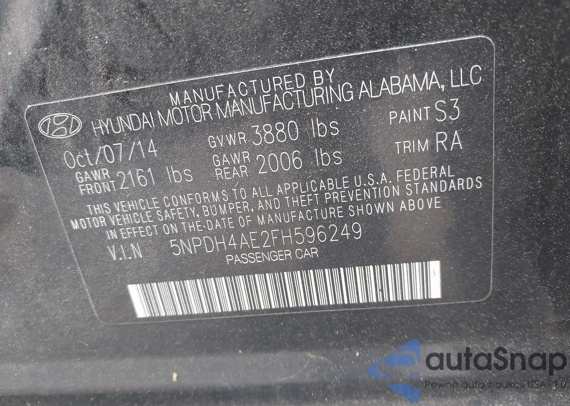 LOT: 42321945 VIN: 1HGCP2F43AA193580