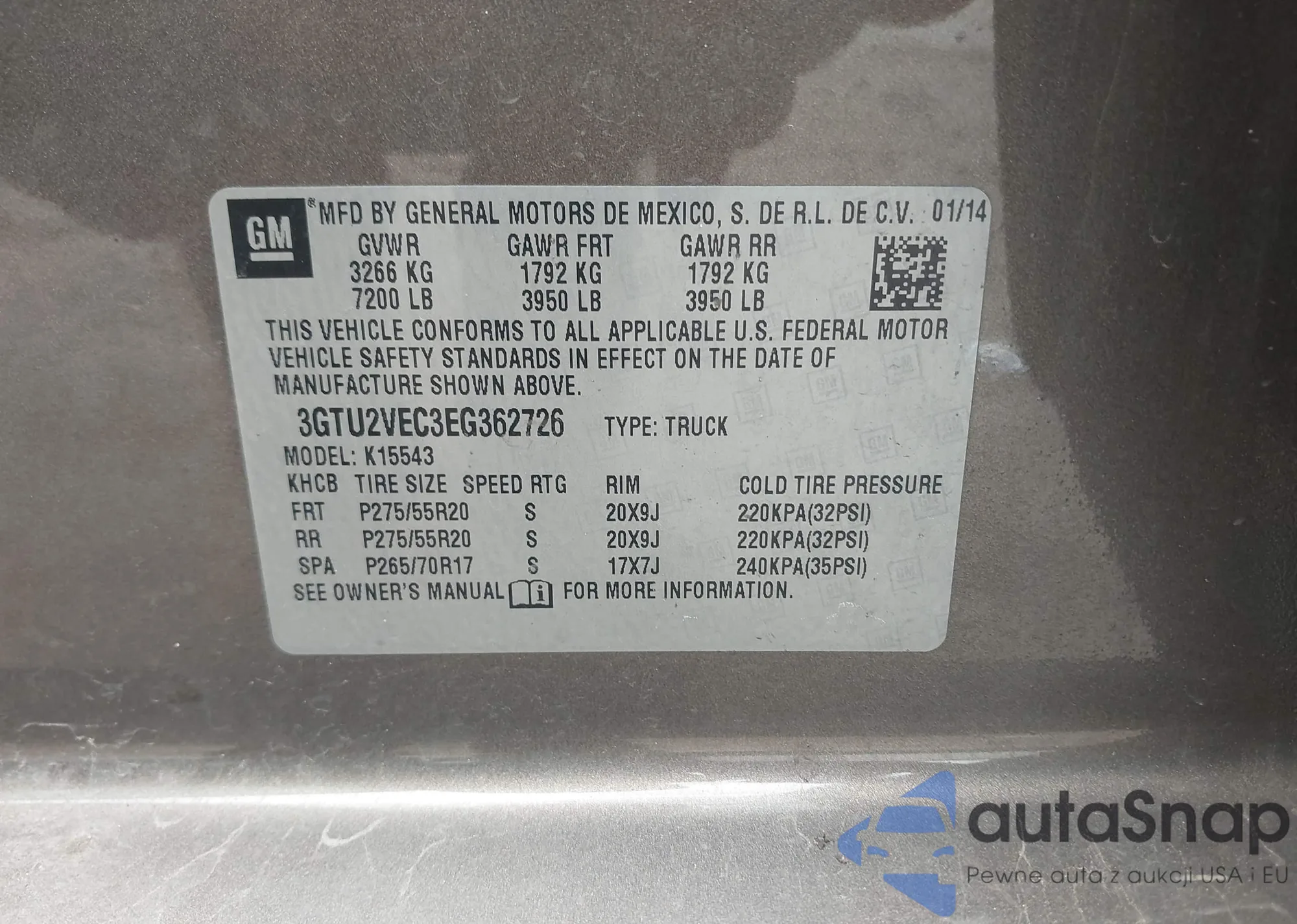• VIN 1GCVKREC4EZ411962