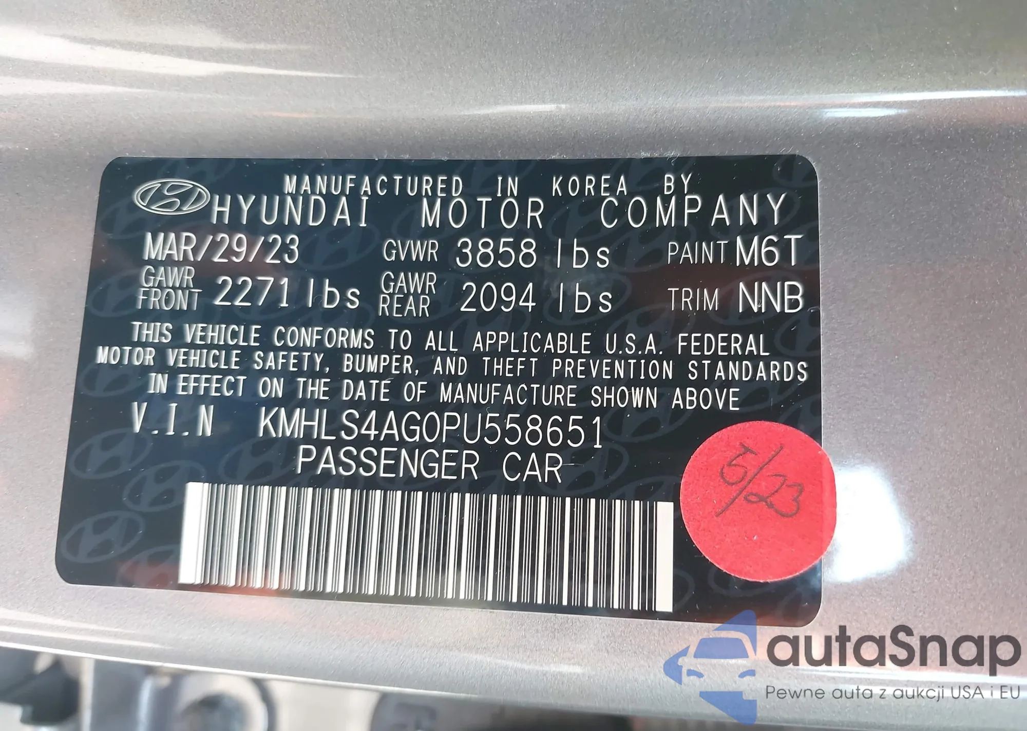 LOT: 42403003 VIN: KMHLS4AG0PU558651