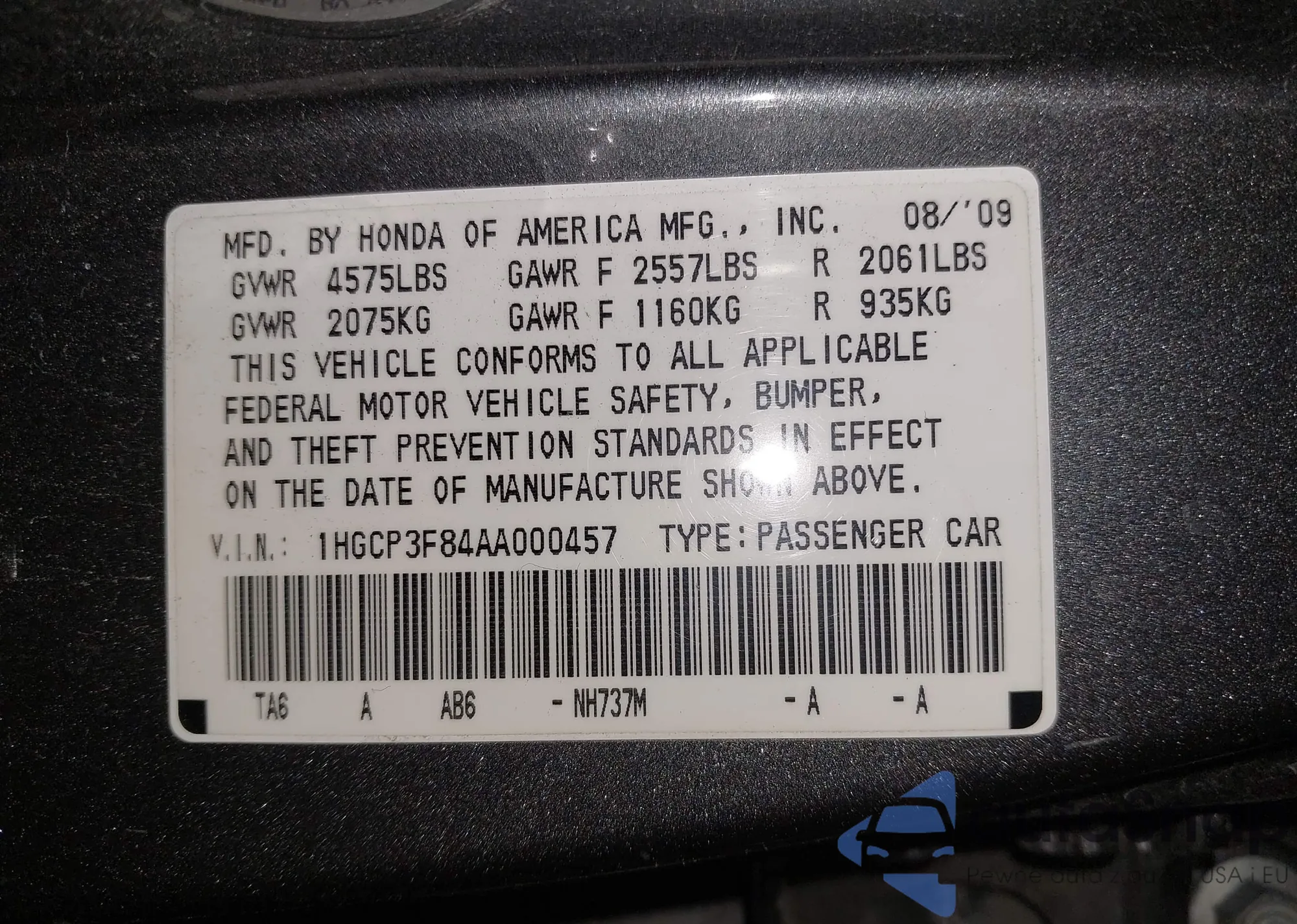 LOT: 42286195 VIN: 1HGCP263X9A185995