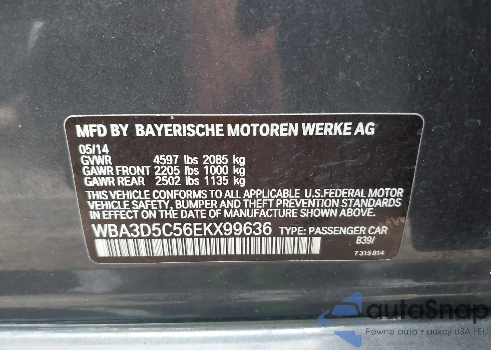 • VIN WBA3D5C56EKX99636