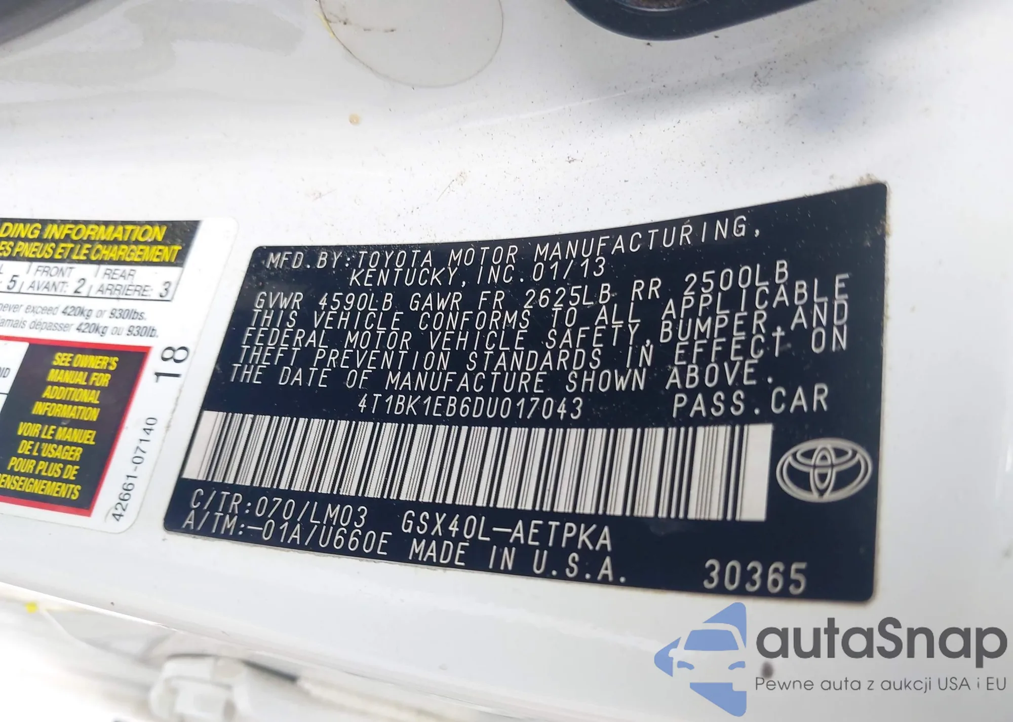 • VIN 4T1BK1EB6DU017043