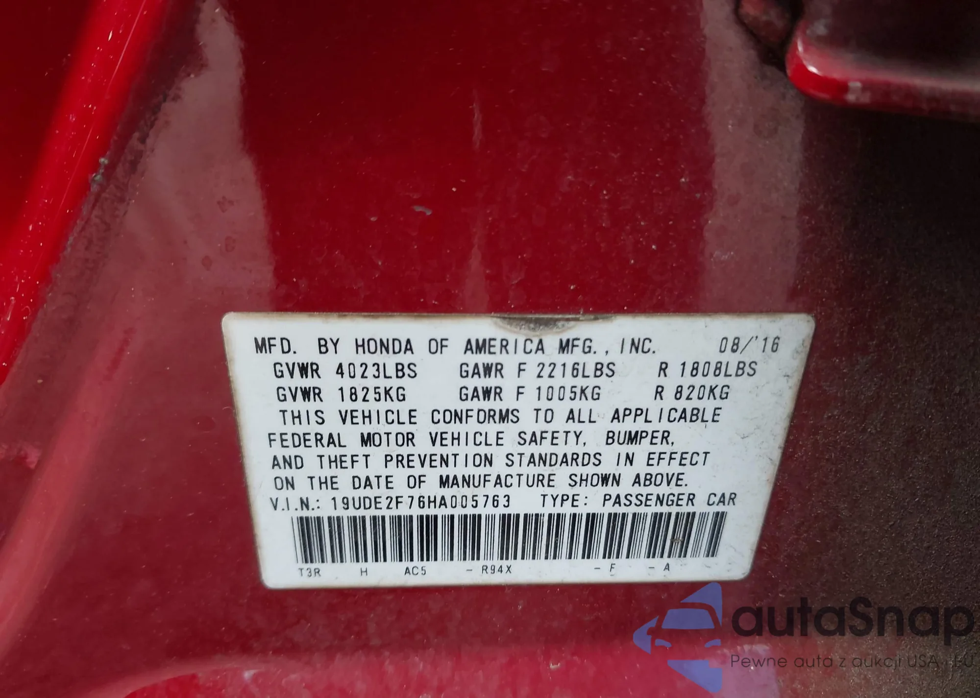 • VIN 19UDE2F76HA005763