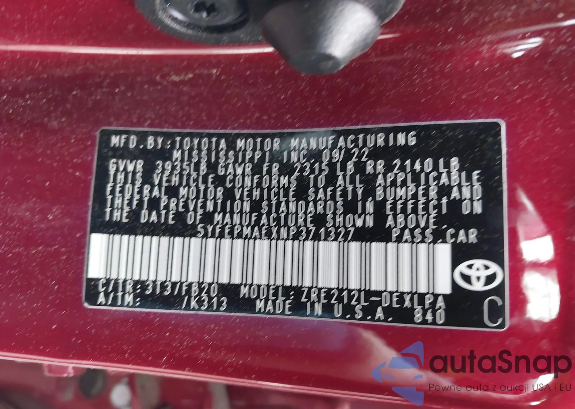 • VIN 5YFEPMAEXNP371327