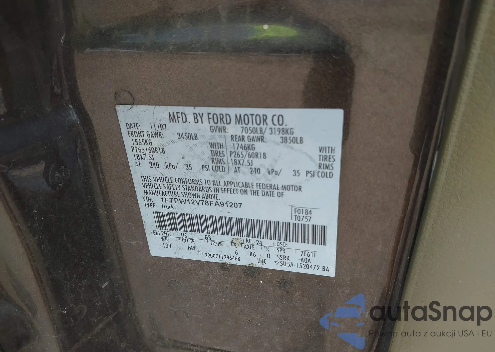 • VIN 1FTPW12VFA91207
