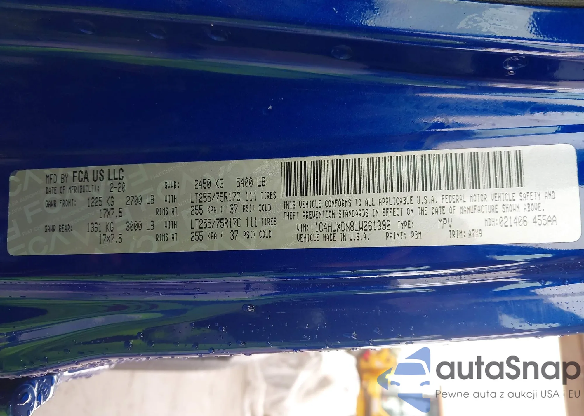 • VIN 1C4RJFLT6HC940777