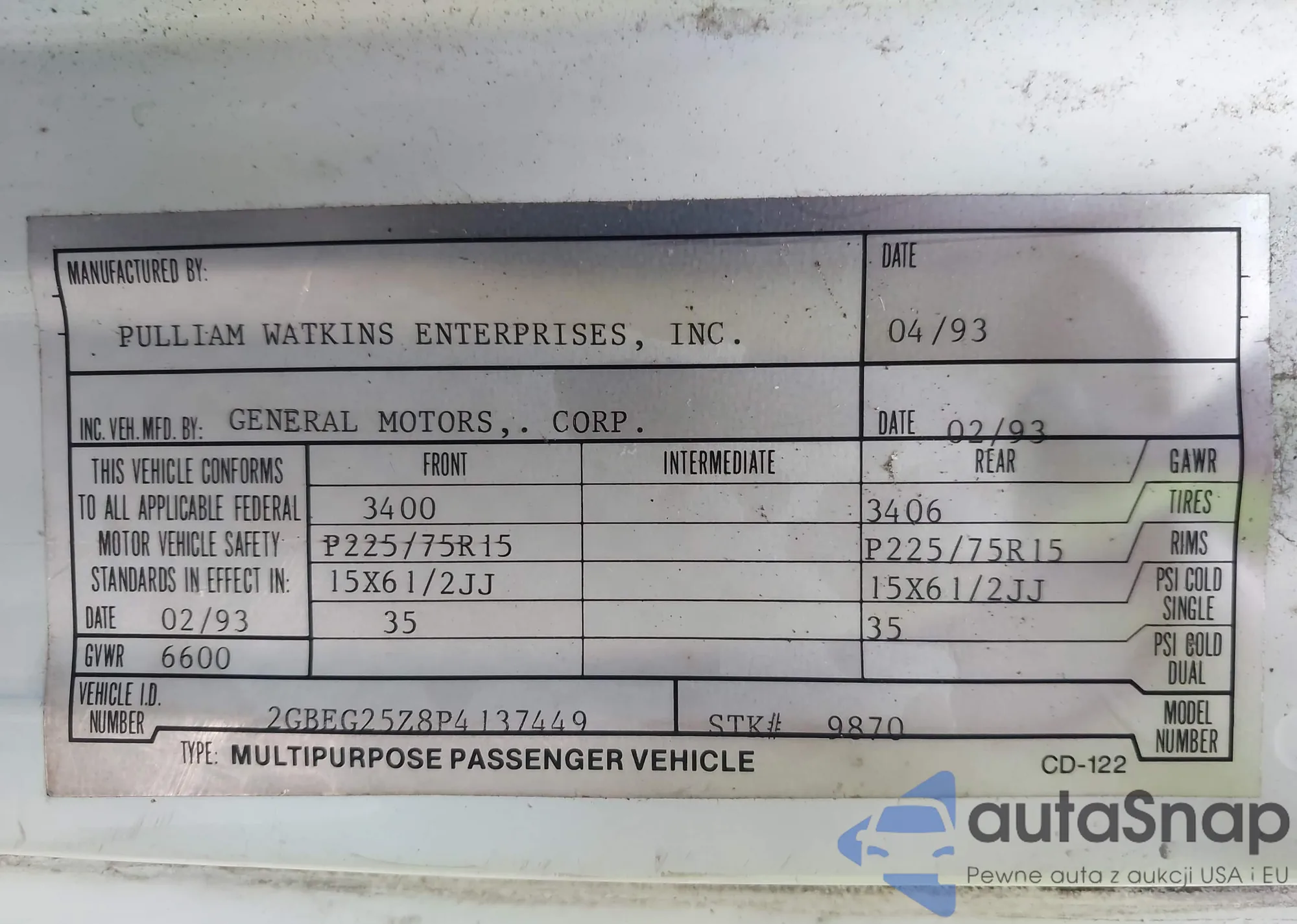 LOT: 42423135 VIN: 1GCWGAFP5K1365688
