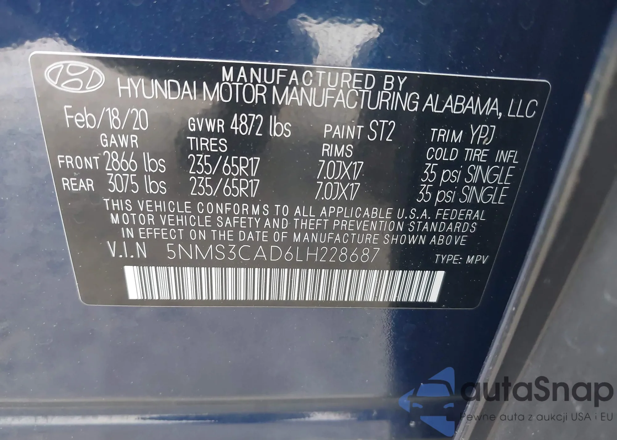 LOT: 42539264 VIN: 5NMSH73E97H000638