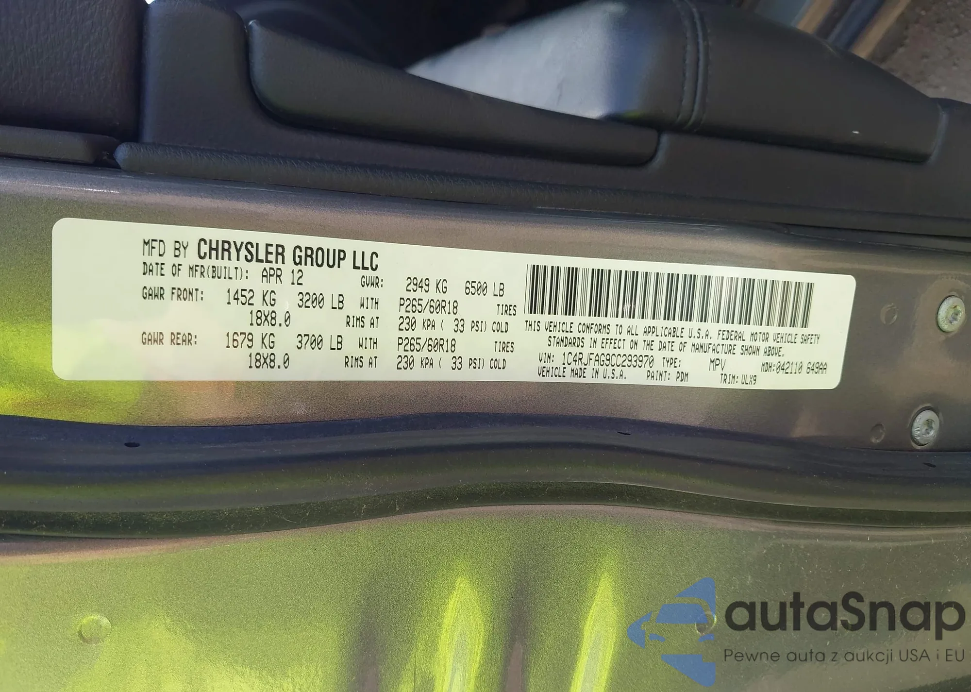 • VIN 1C4RJFAG9CC293970