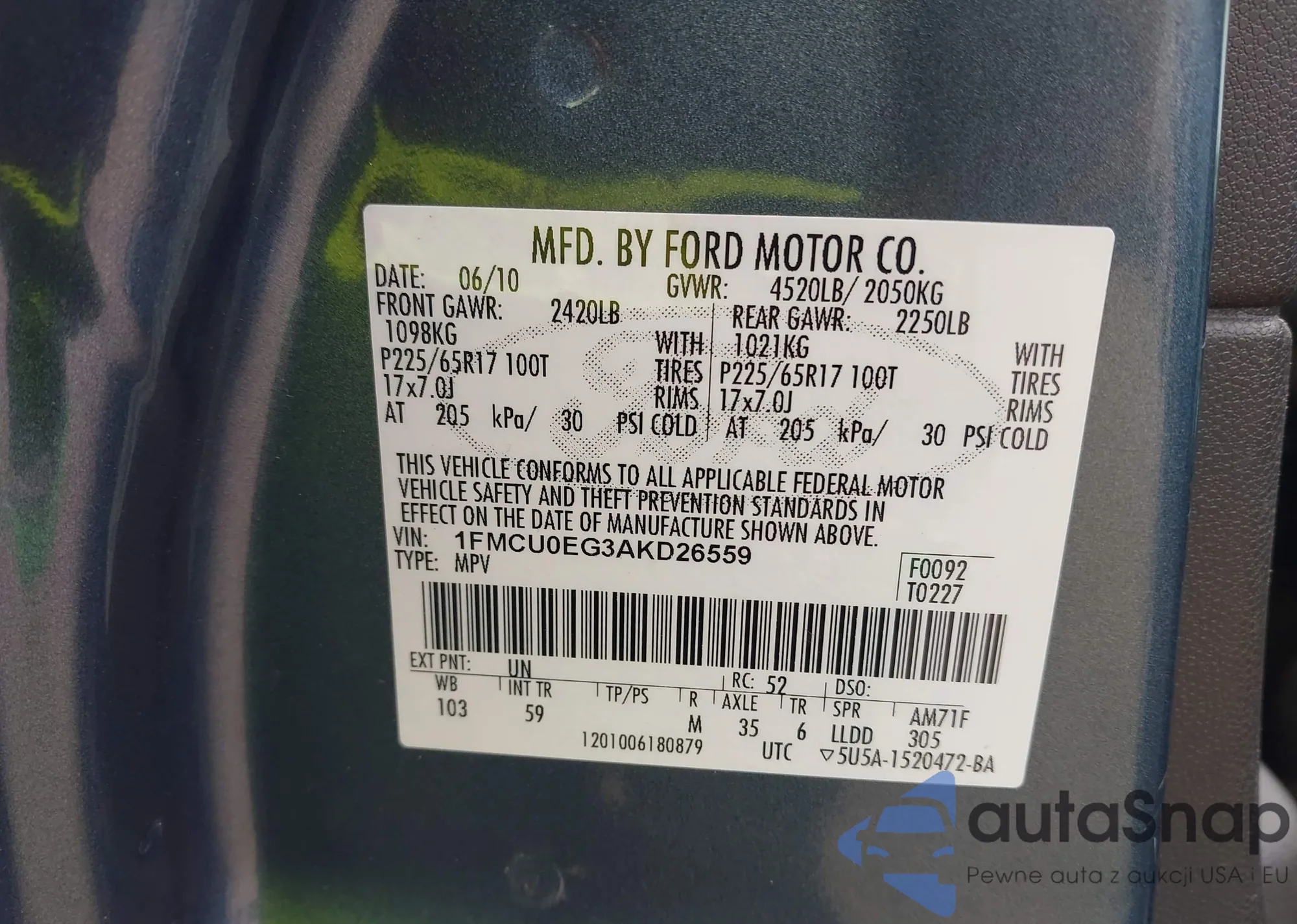 • VIN 1FMCU0EG3AKD26559