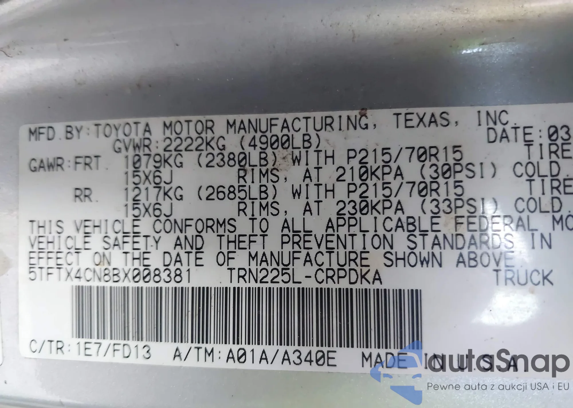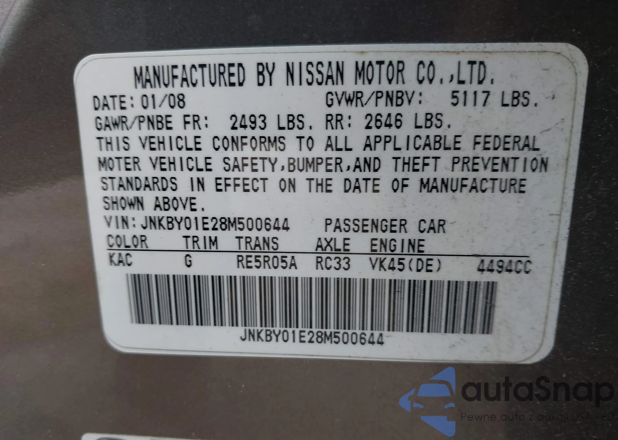 LOT: 42432257 VIN: JNKBY01E28M500644