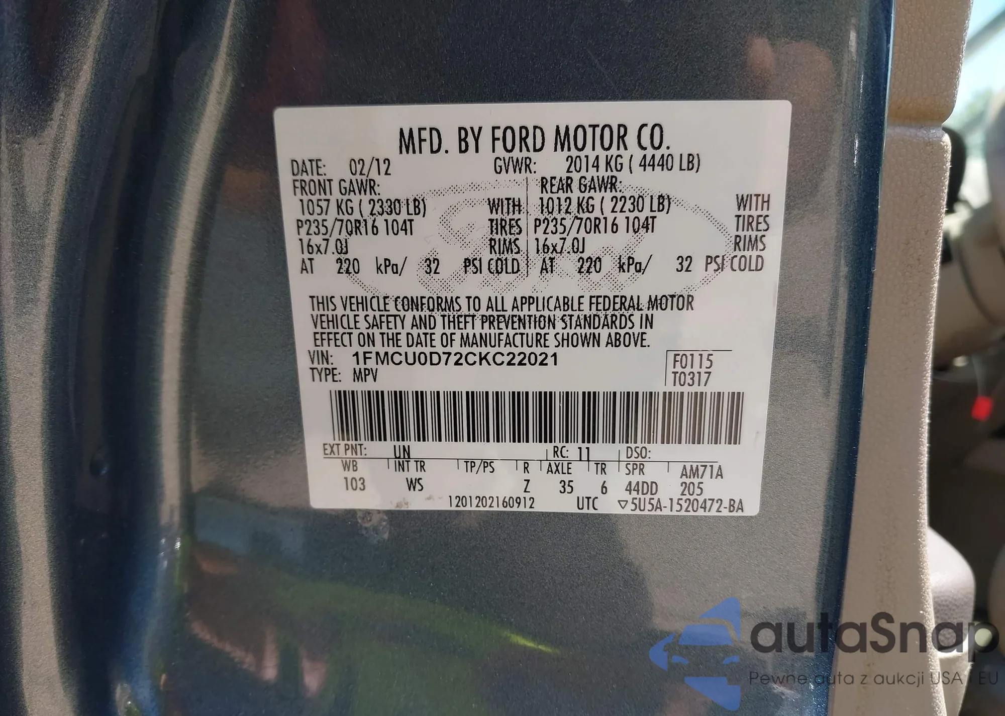 • VIN 1FMCU0D72CKC22021