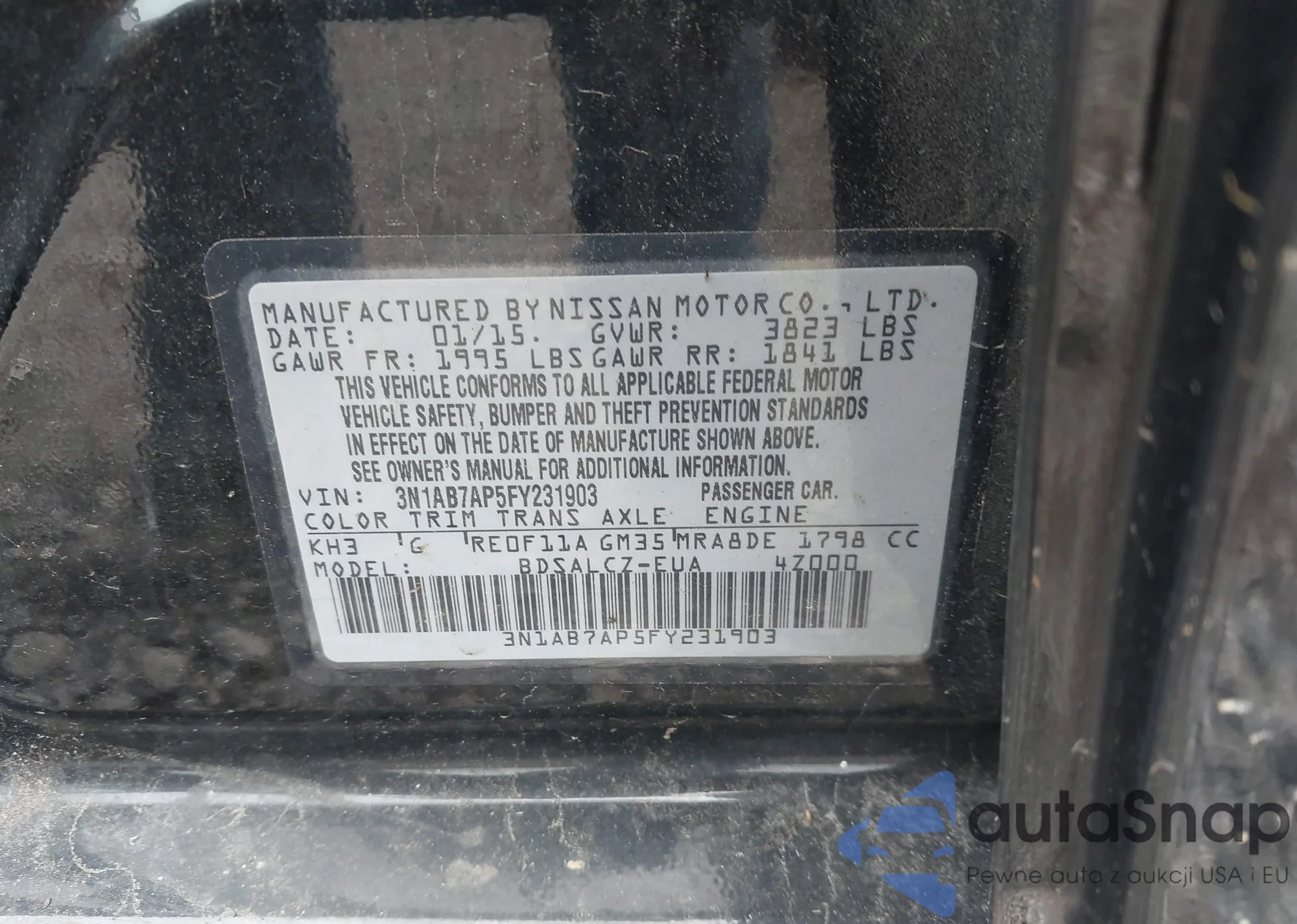 LOT: 42534856 VIN: 3N1AB7AP5FY231903
