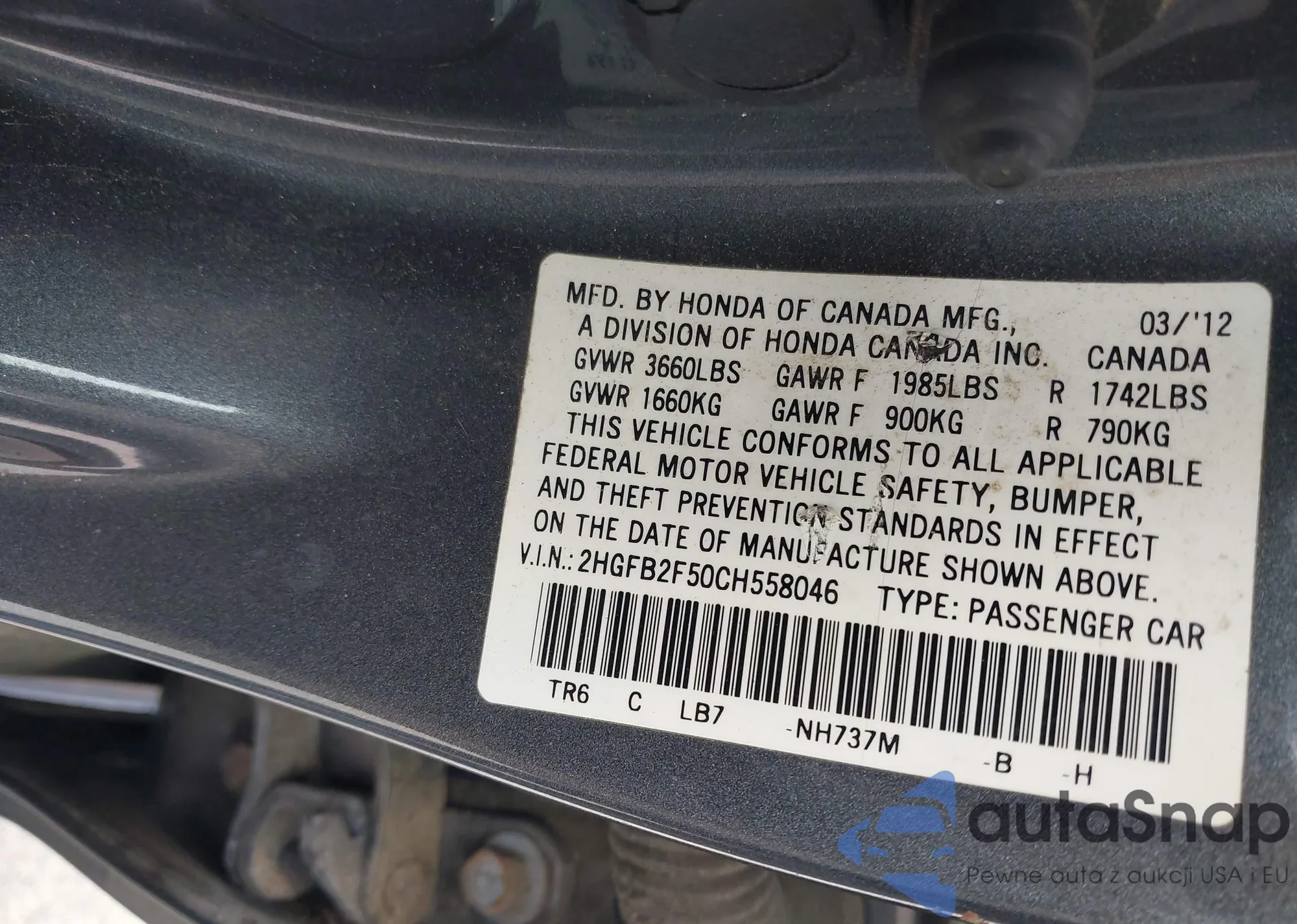 • VIN 2HGFB2F50CH558046