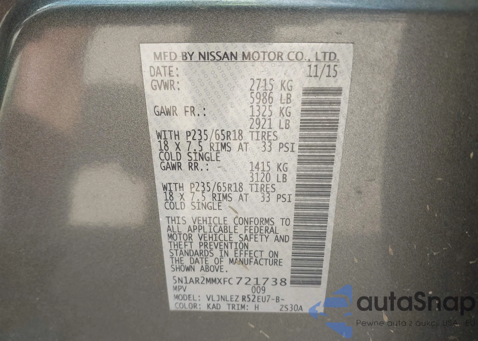 • VIN 5N1AR2MMXFC721738