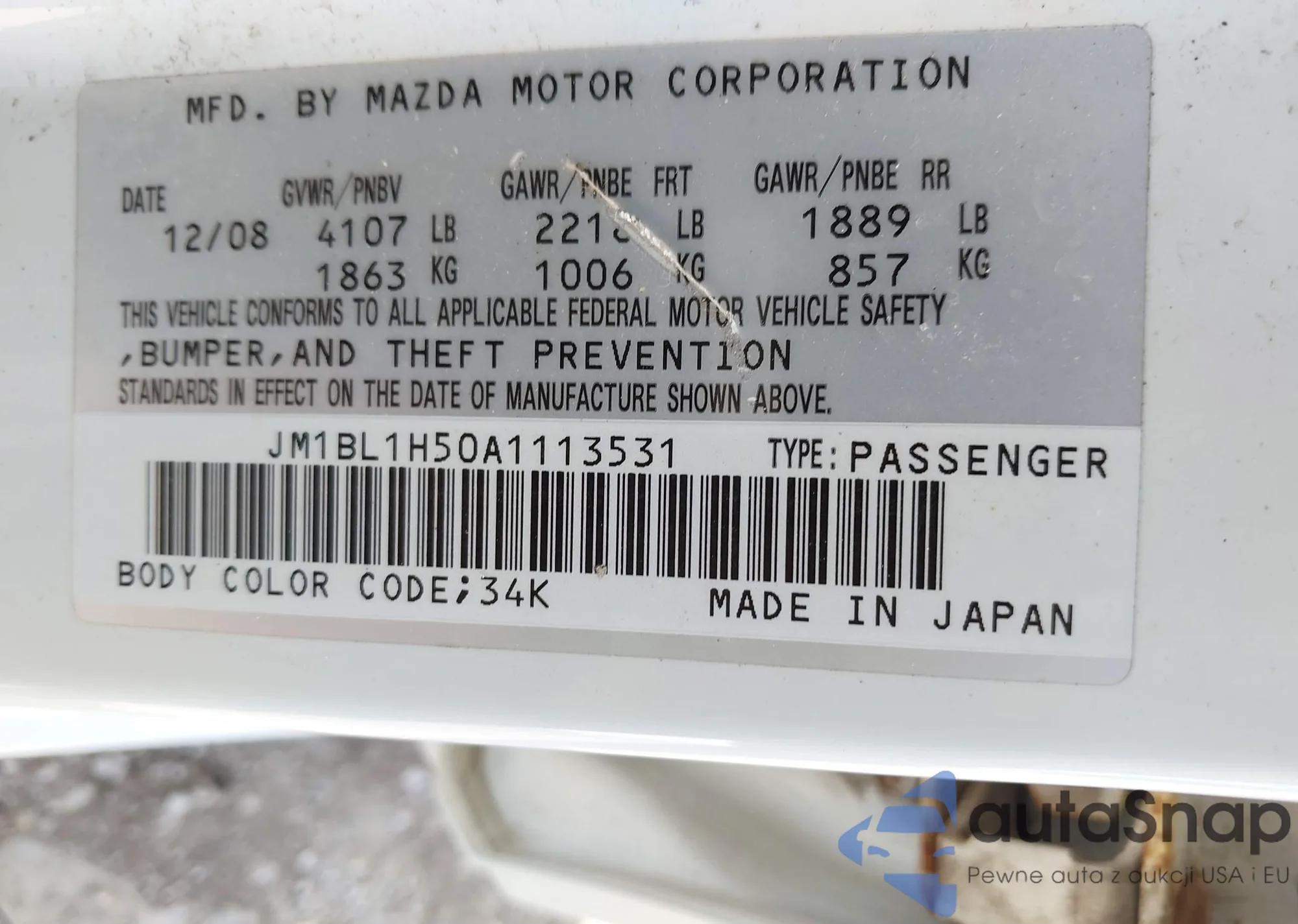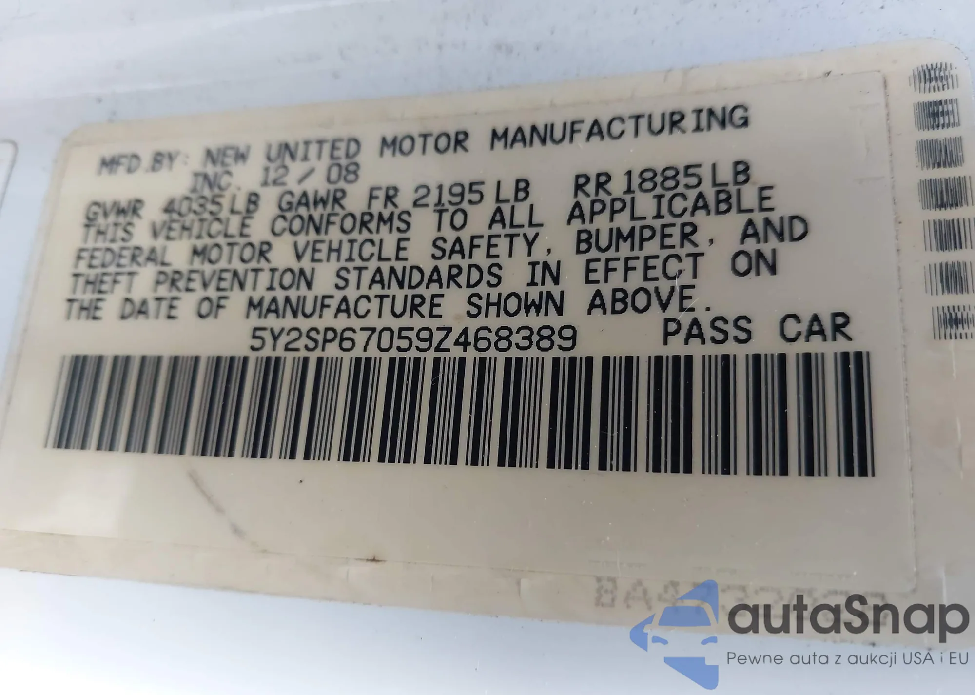 LOT: 42474107 VIN: 5Y2SP67059Z468389