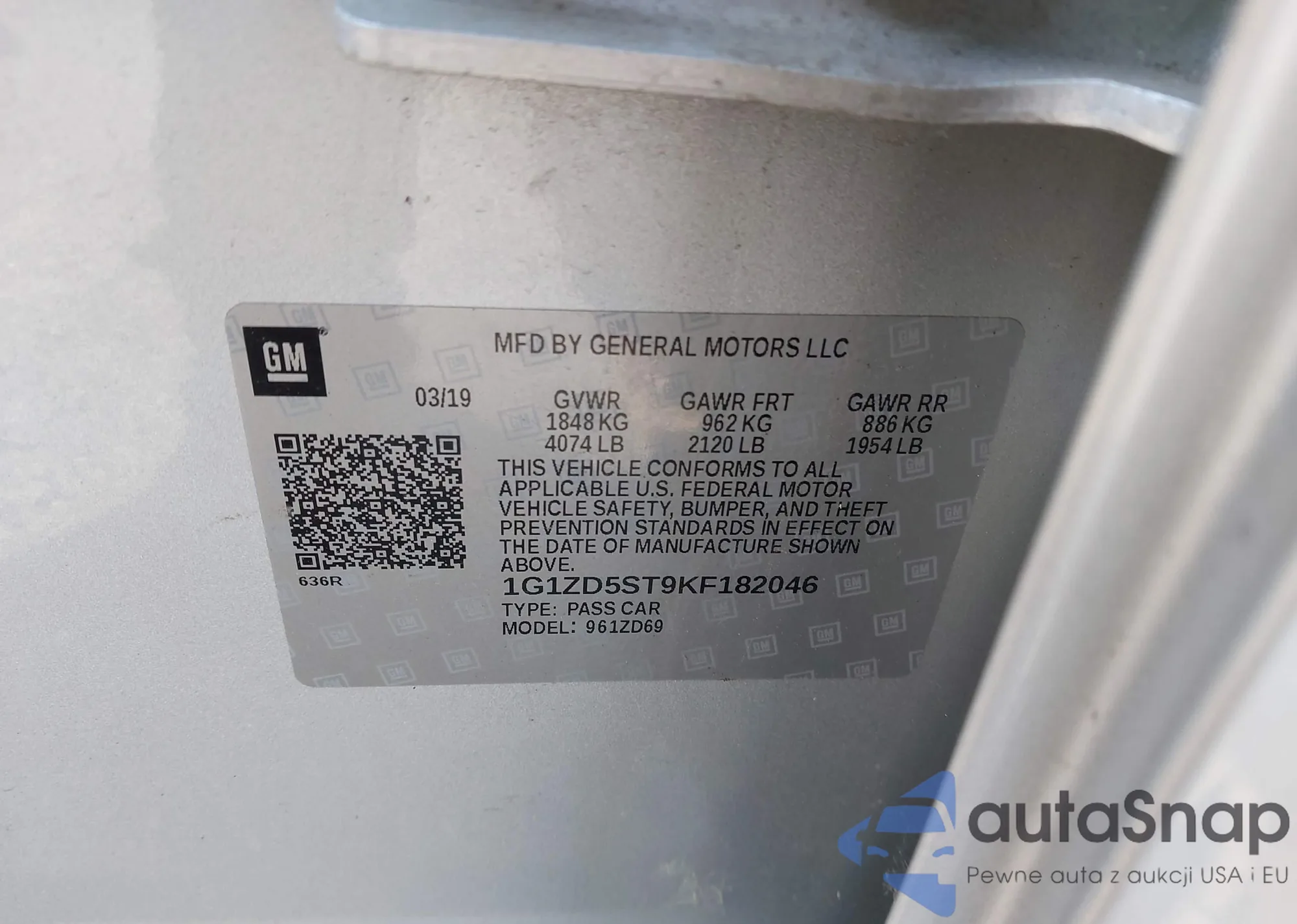 LOT: 42428703 VIN: 1G1ZD5ST9KF182046