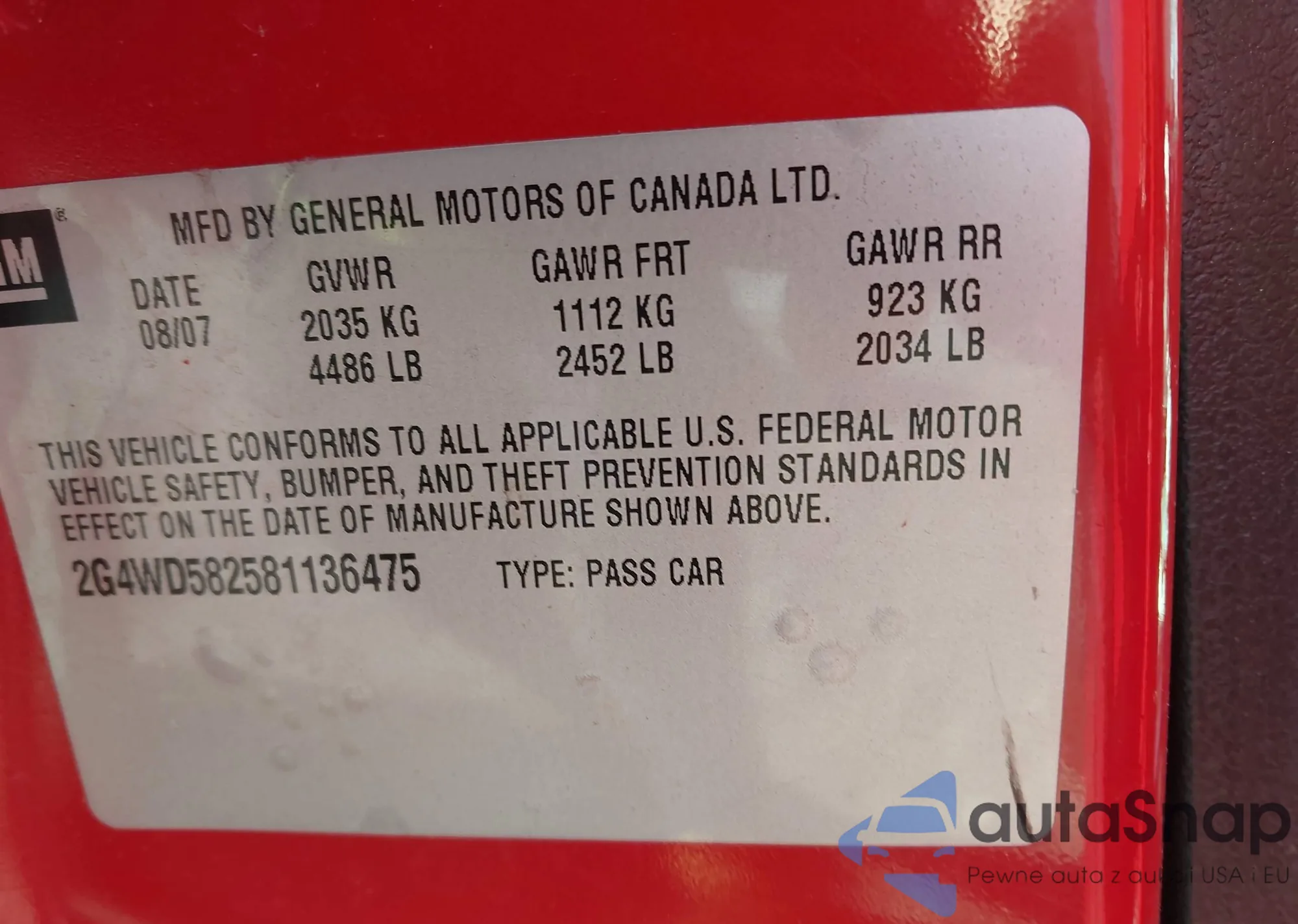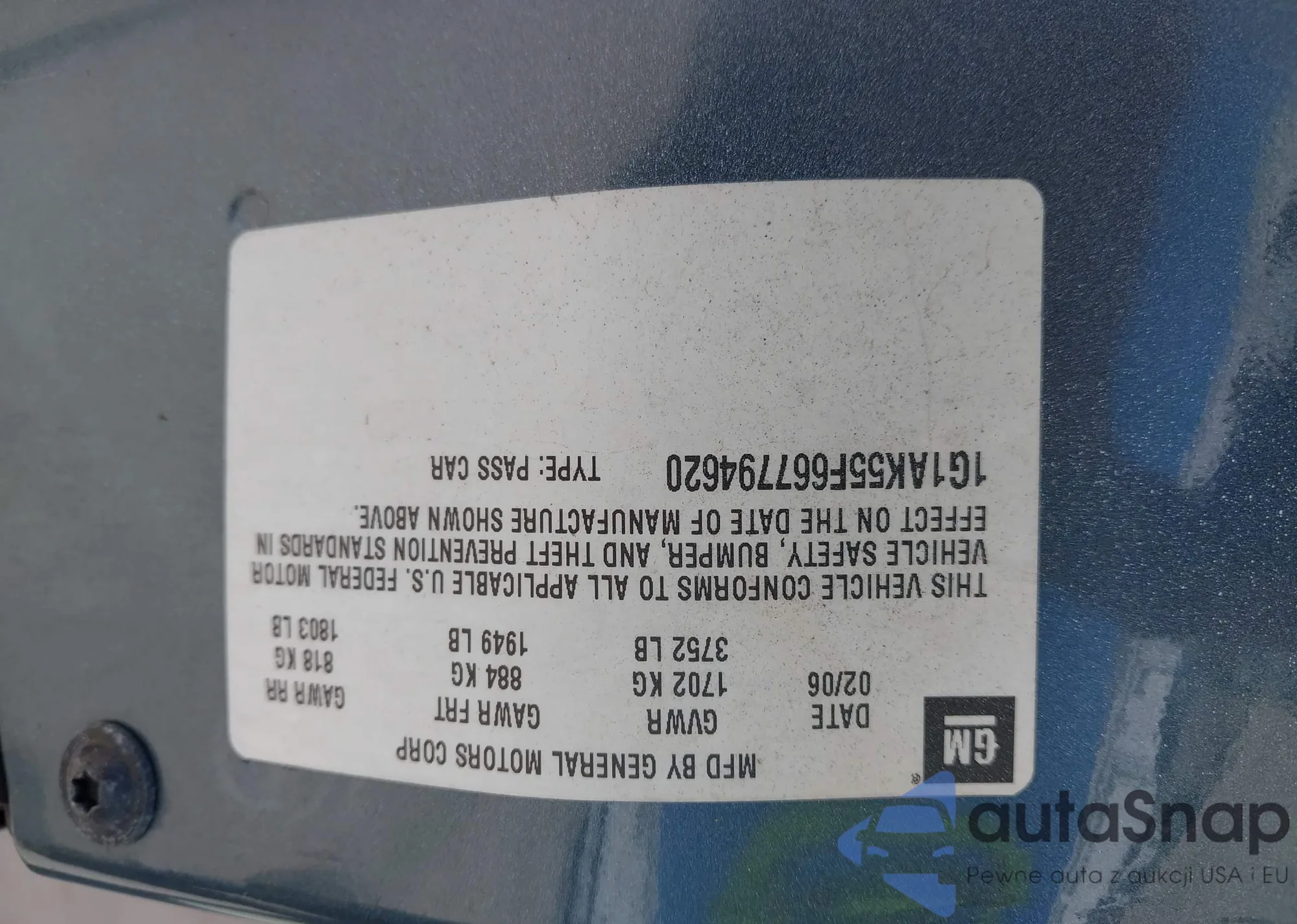 • VIN 1G1AK55F667794620