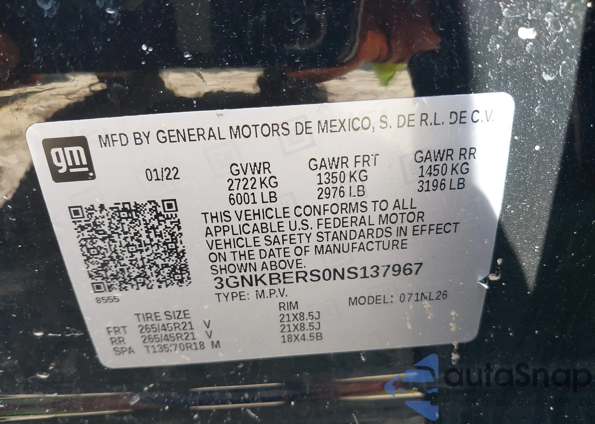 • VIN 5YJYGDEE3MF173321
