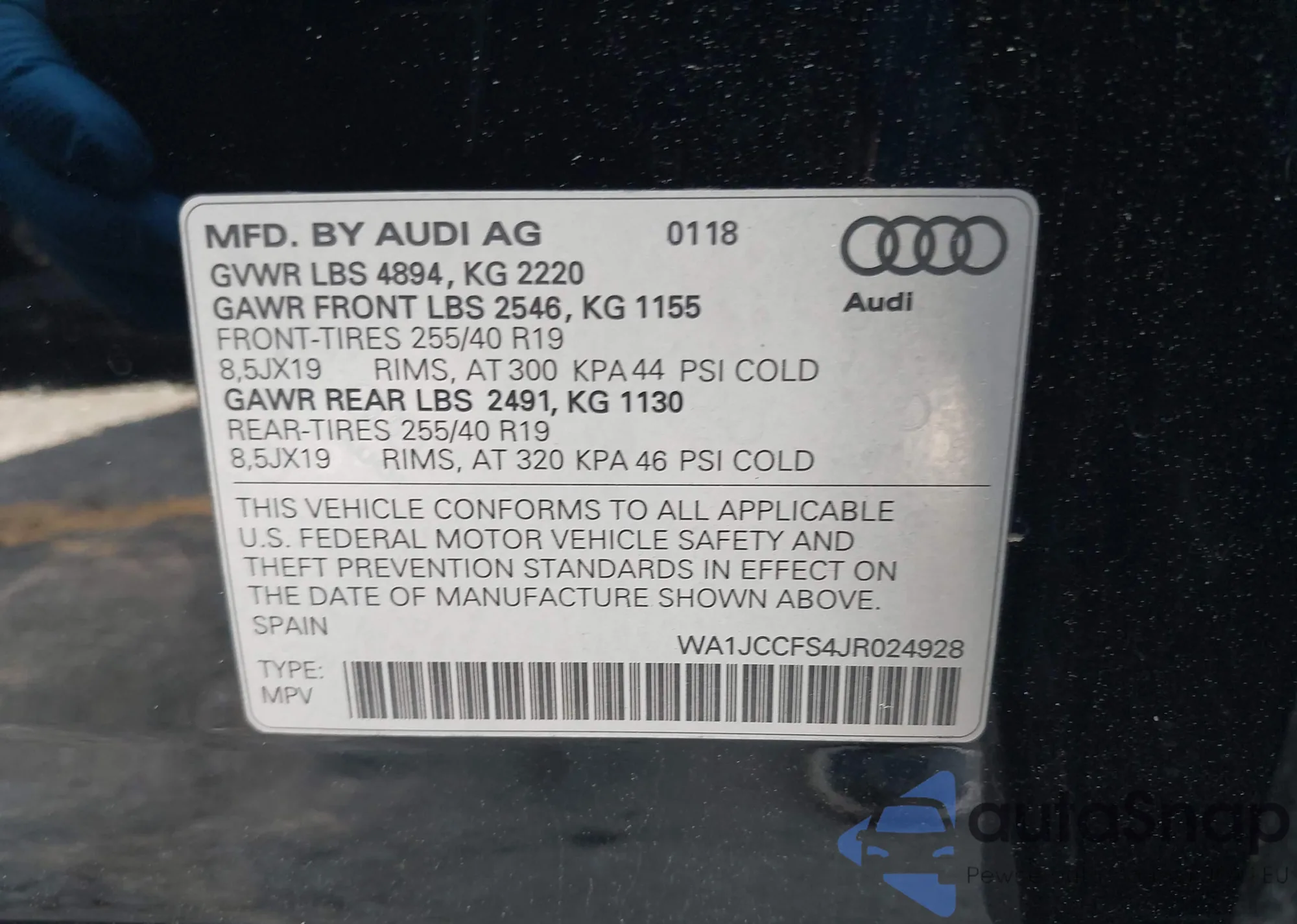 LOT: 42194262 VIN: WA1JCCFS4JR024928