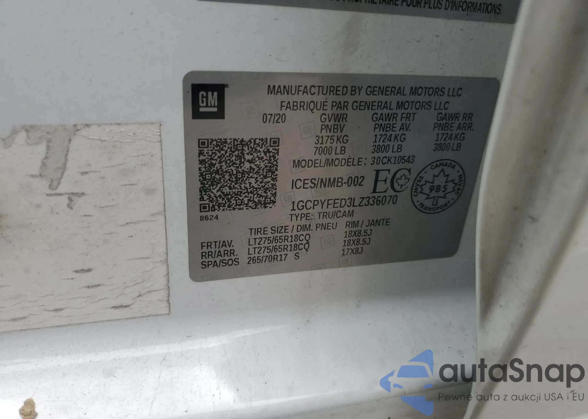 LOT: 62806735 VIN: 1GCPYFED3LZ336070