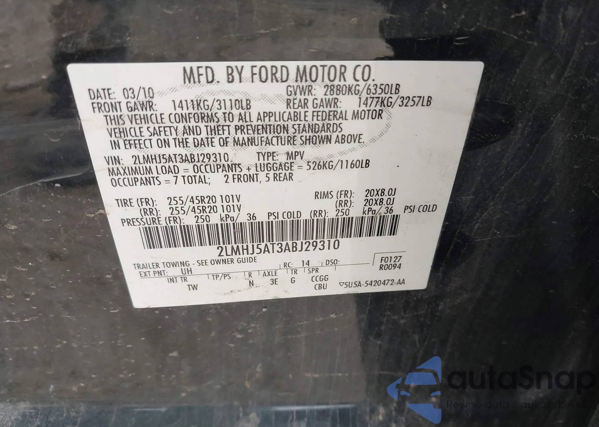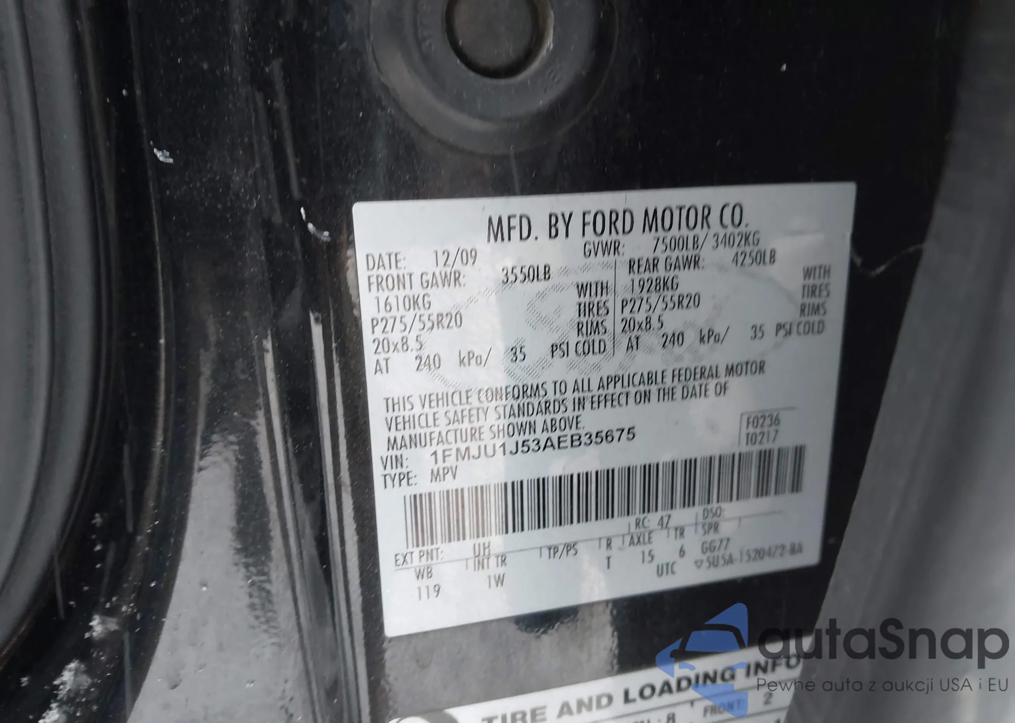 LOT: 41310340 VIN: 1FMJU1J53AEB35675