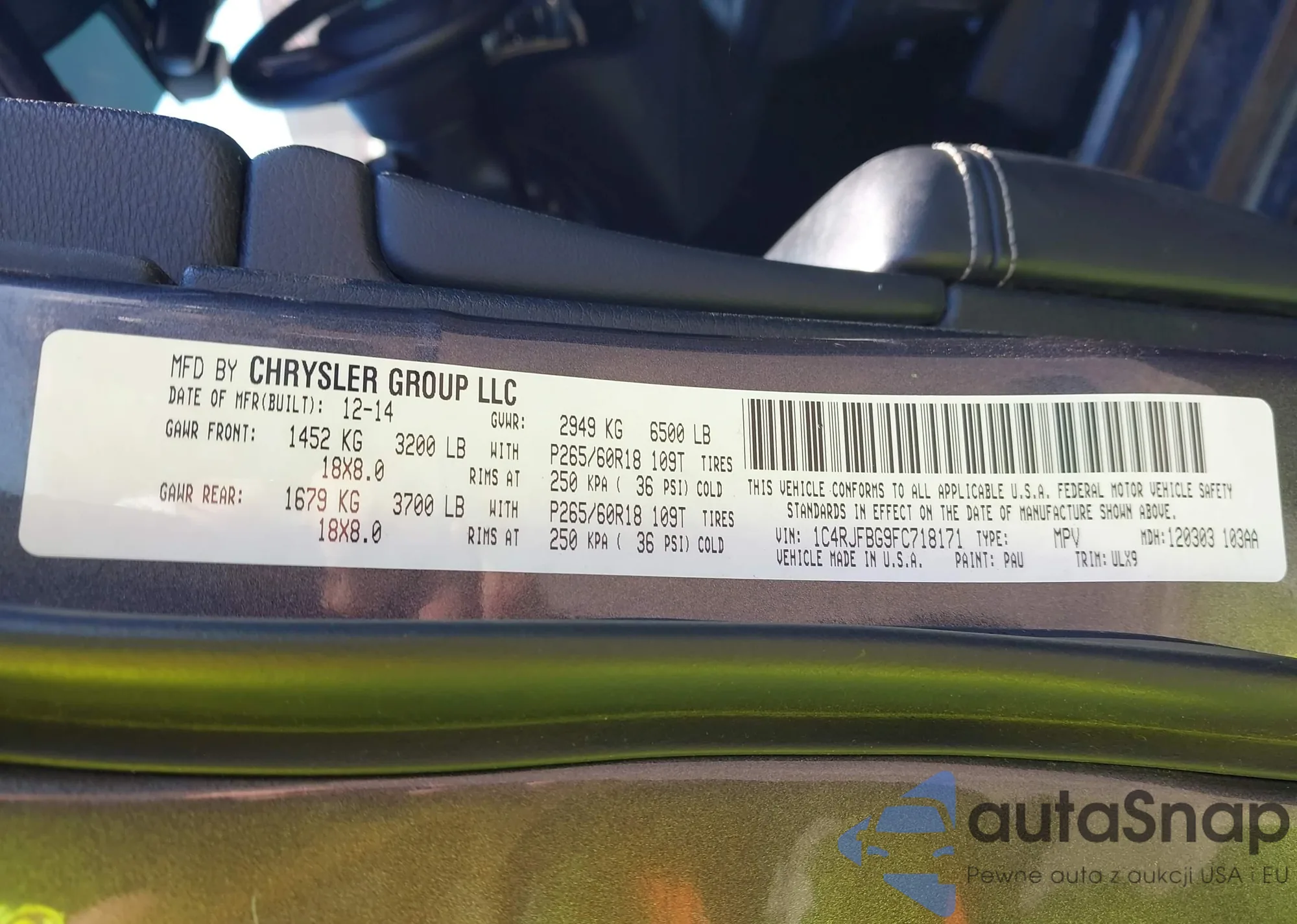 LOT: 41921910 VIN: 1C4RJFBG9FC718171