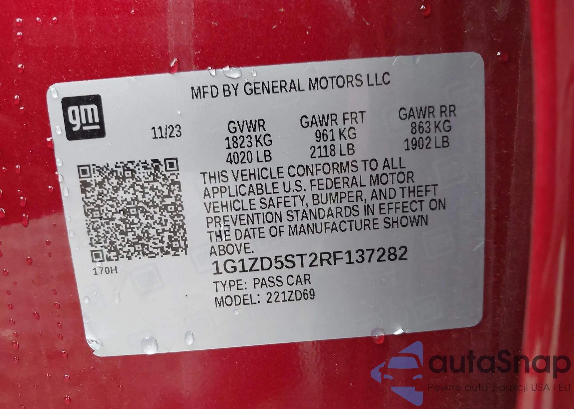 LOT: 41959826 VIN: 1G1ZD5ST2RF137282
