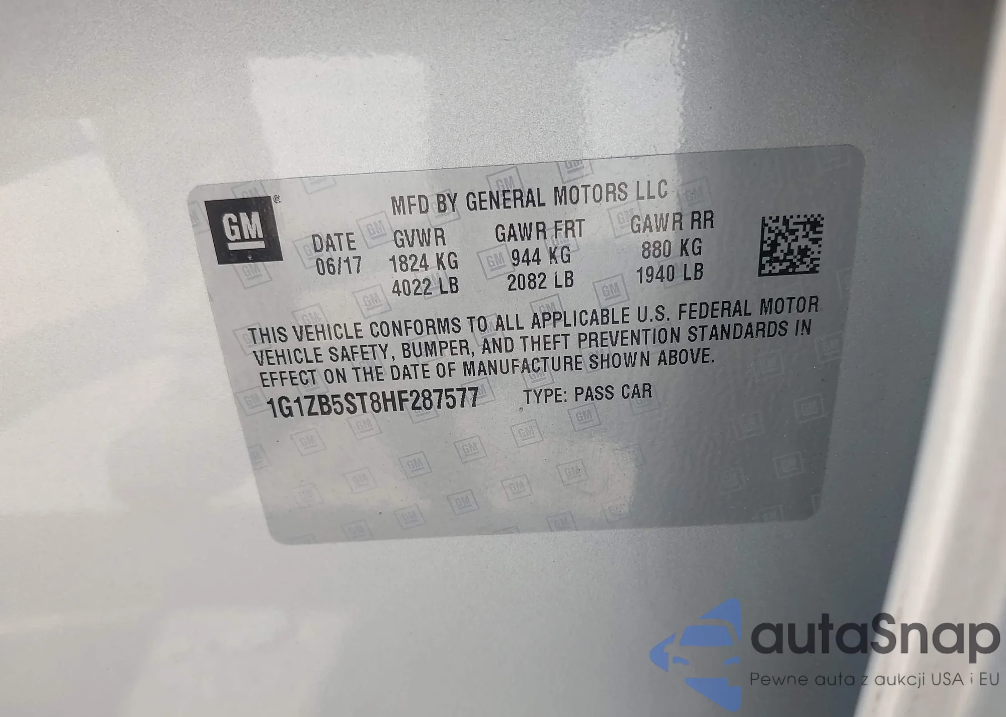LOT: 42469295 VIN: 1G1ZB5ST8HF287577