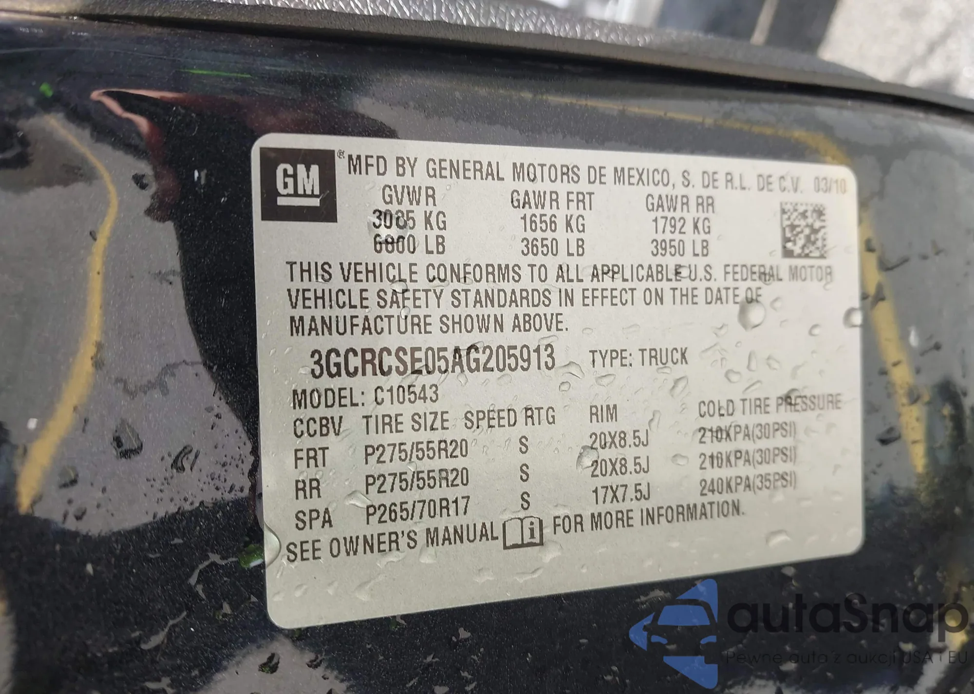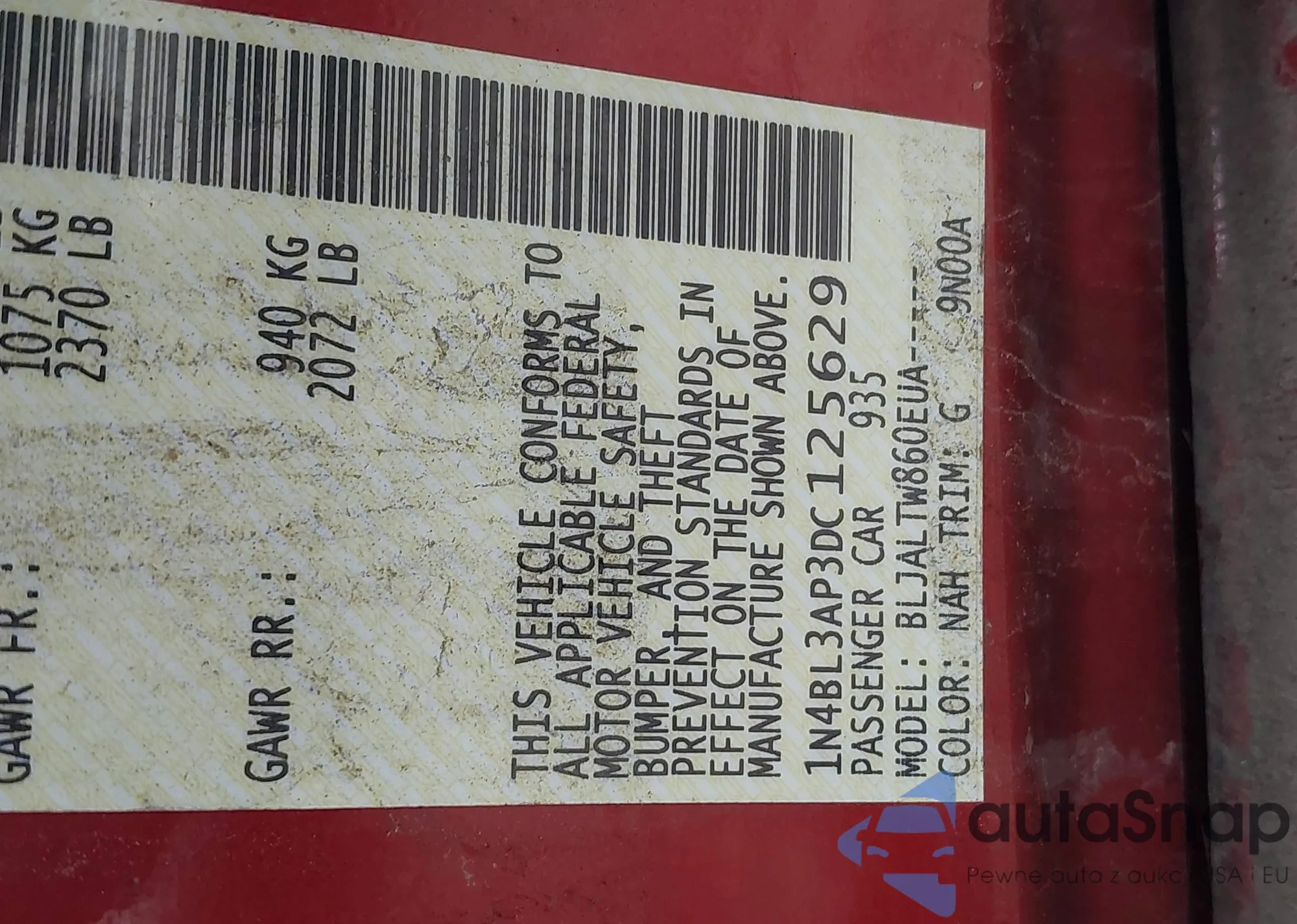 • VIN 1N4BL3AP3DC125629