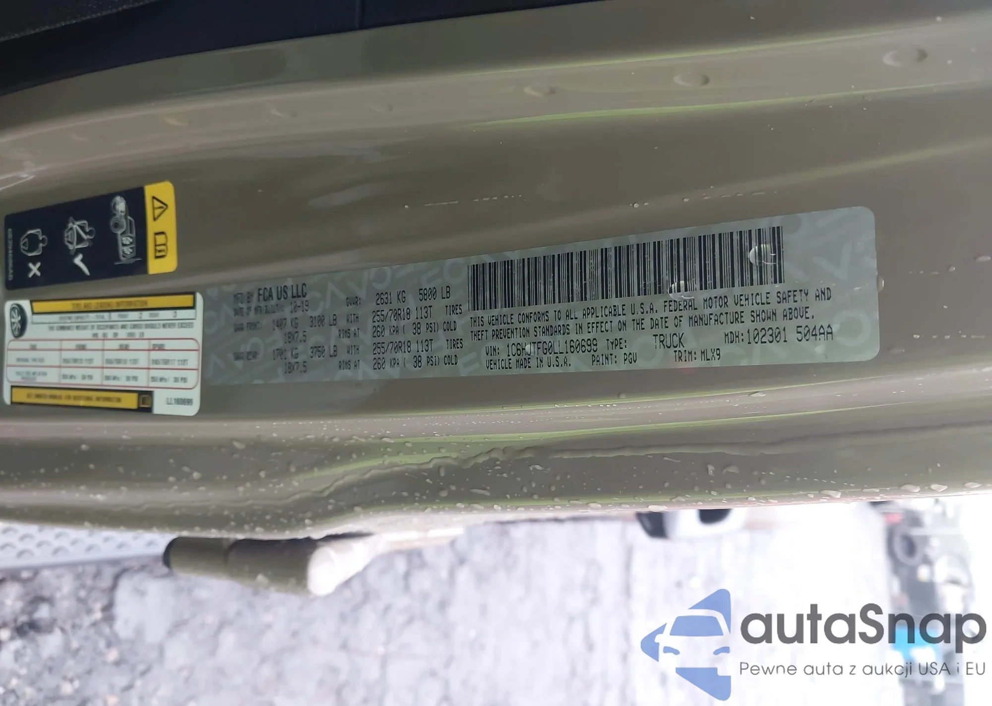 • VIN 1C6HJTFG0LL160699