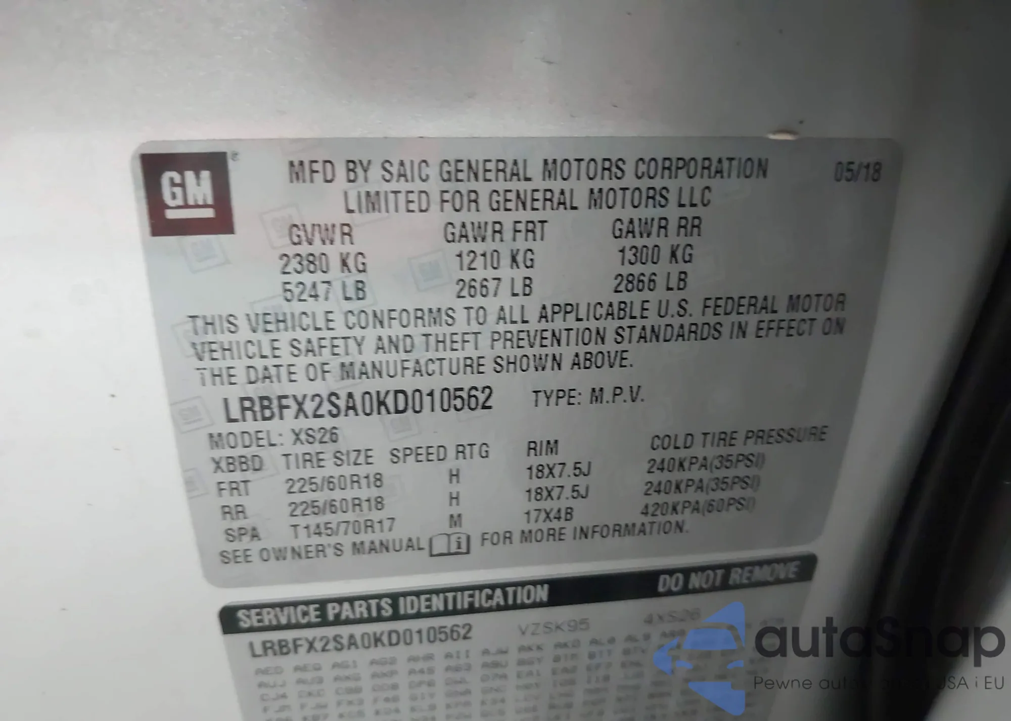 • VIN LRBFX2SA0KD010562