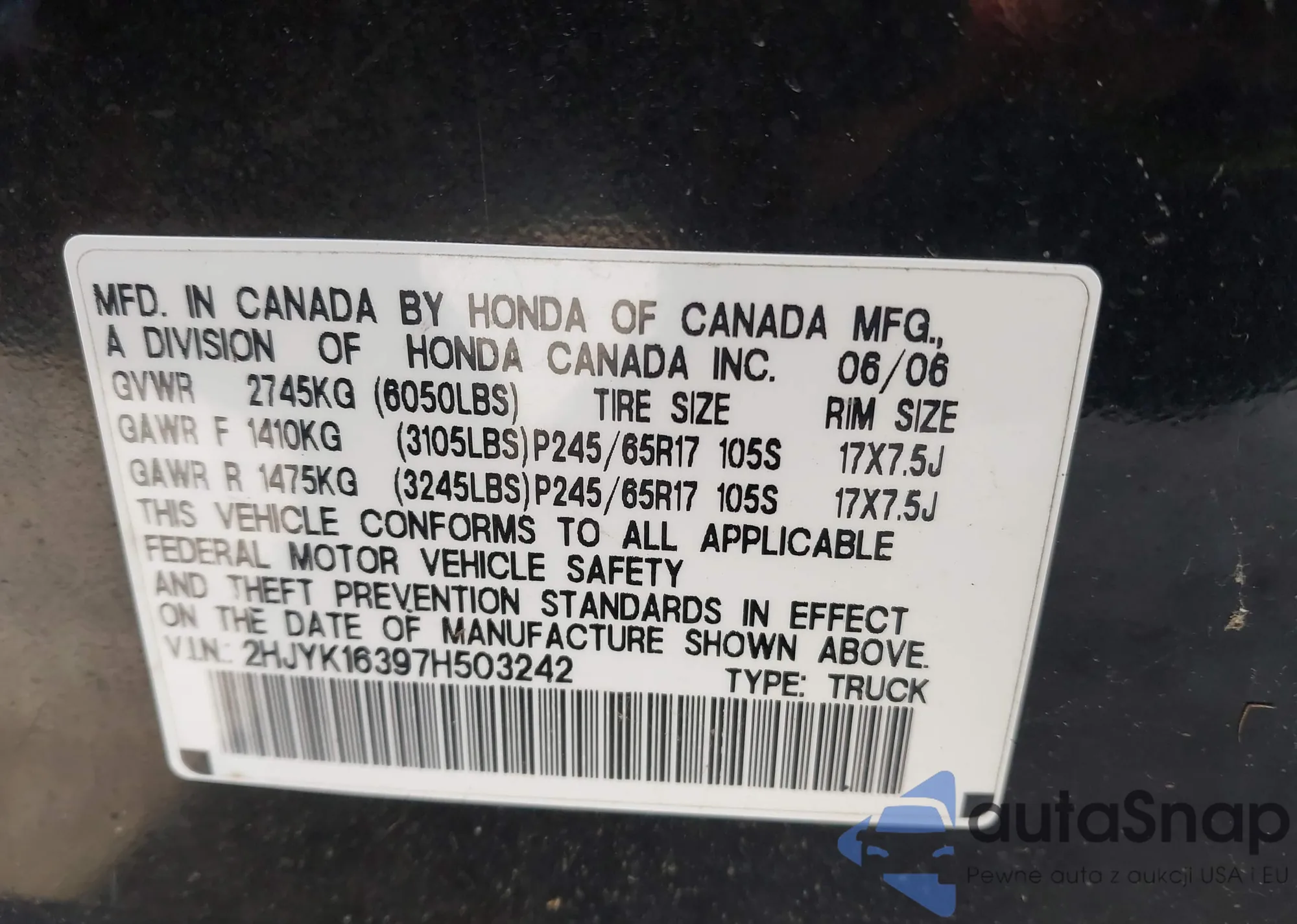 • VIN 2HJYK16397H503242