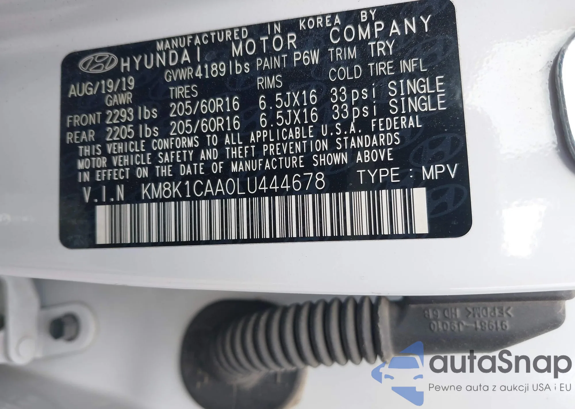 • VIN 5XYKT3A63DG321079