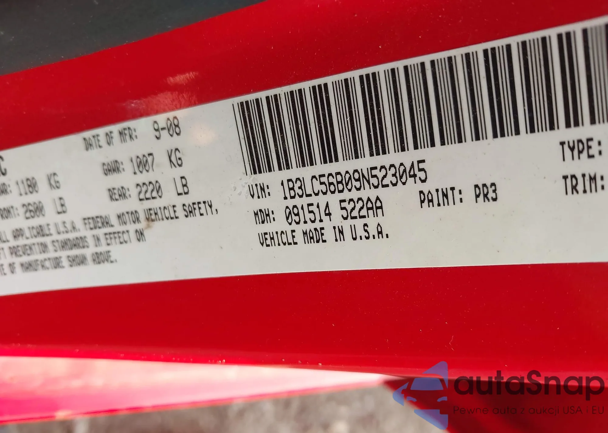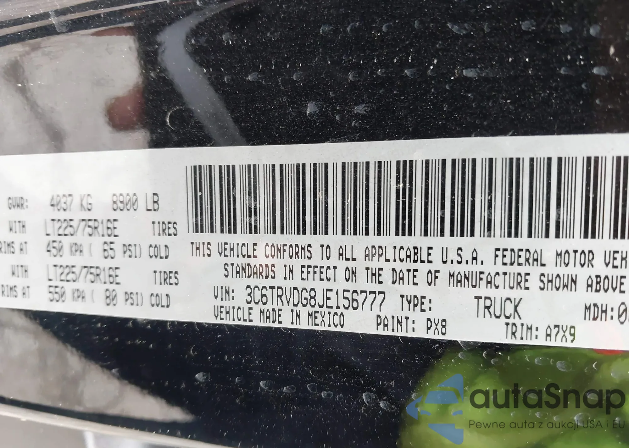 • VIN 3C6TRVDG8JE156777