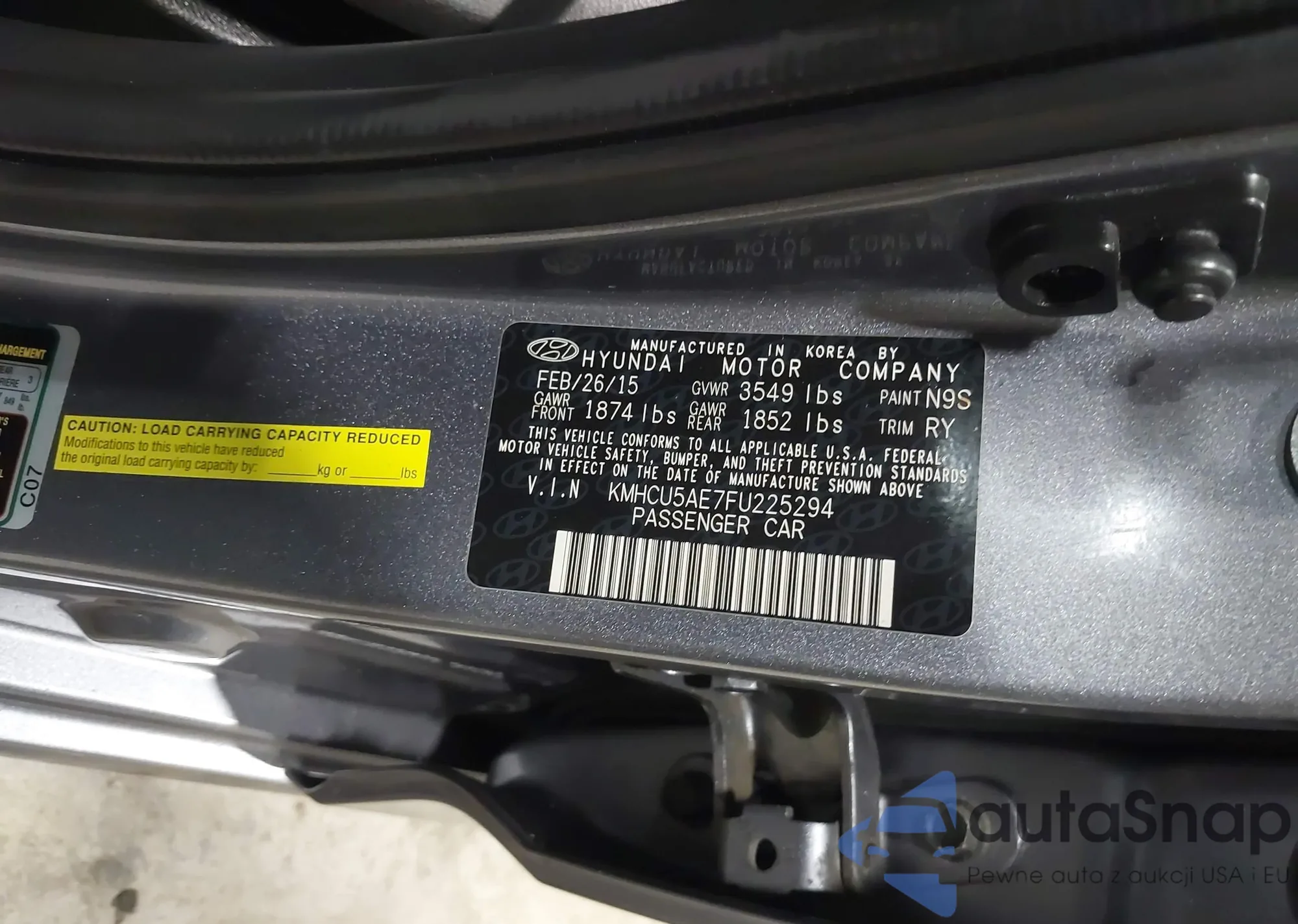 LOT: 42523561 VIN: KMHCU5AE7FU225294