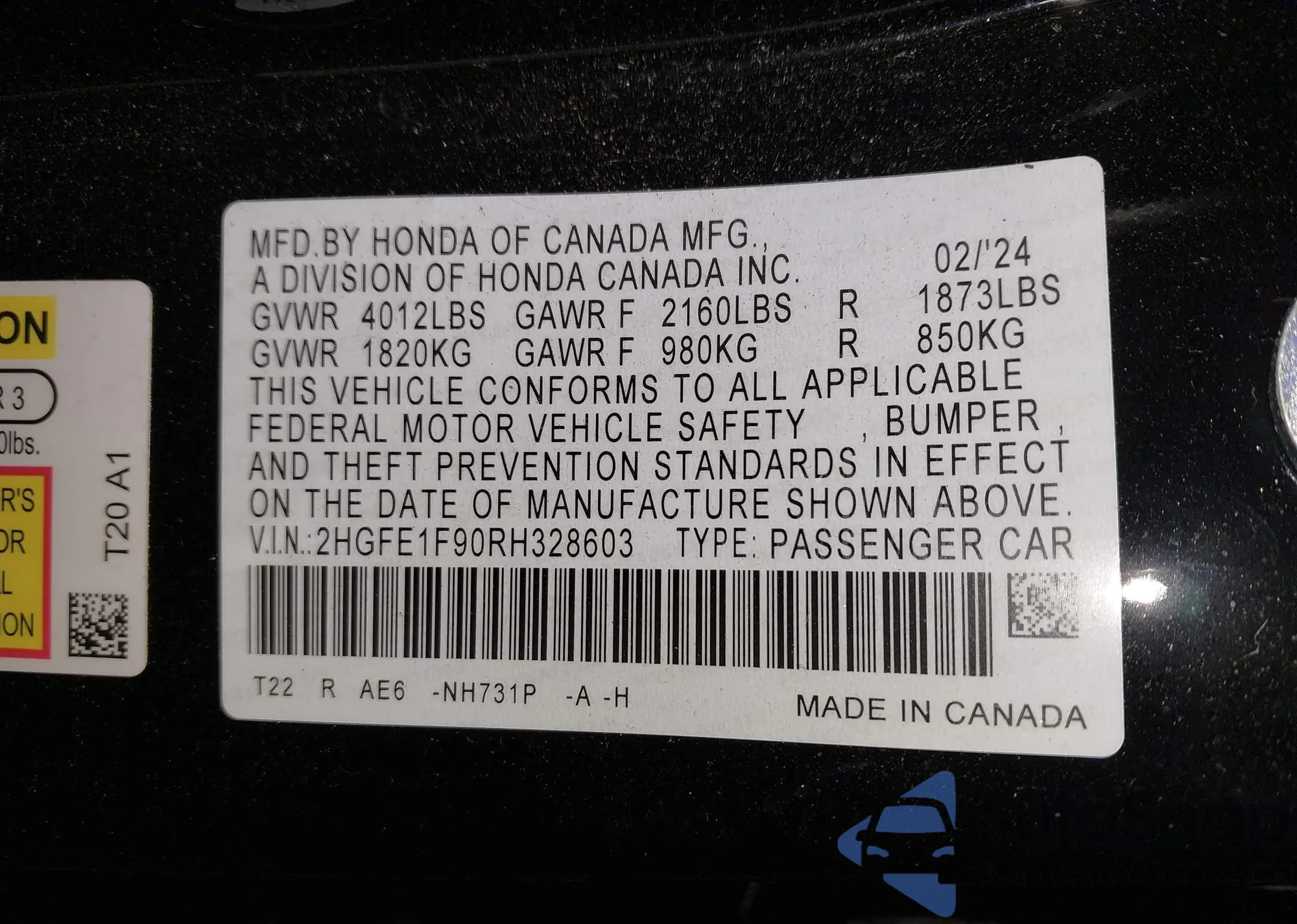 • VIN 2HGFE1F90RH328603