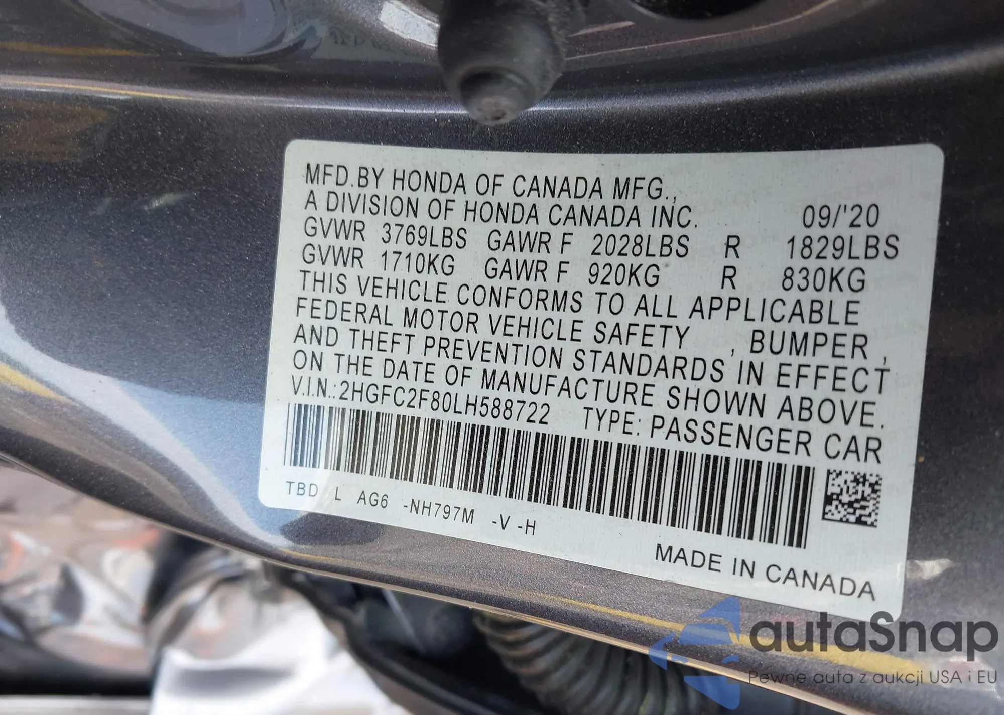 • VIN 1HGCV1F16LA006731