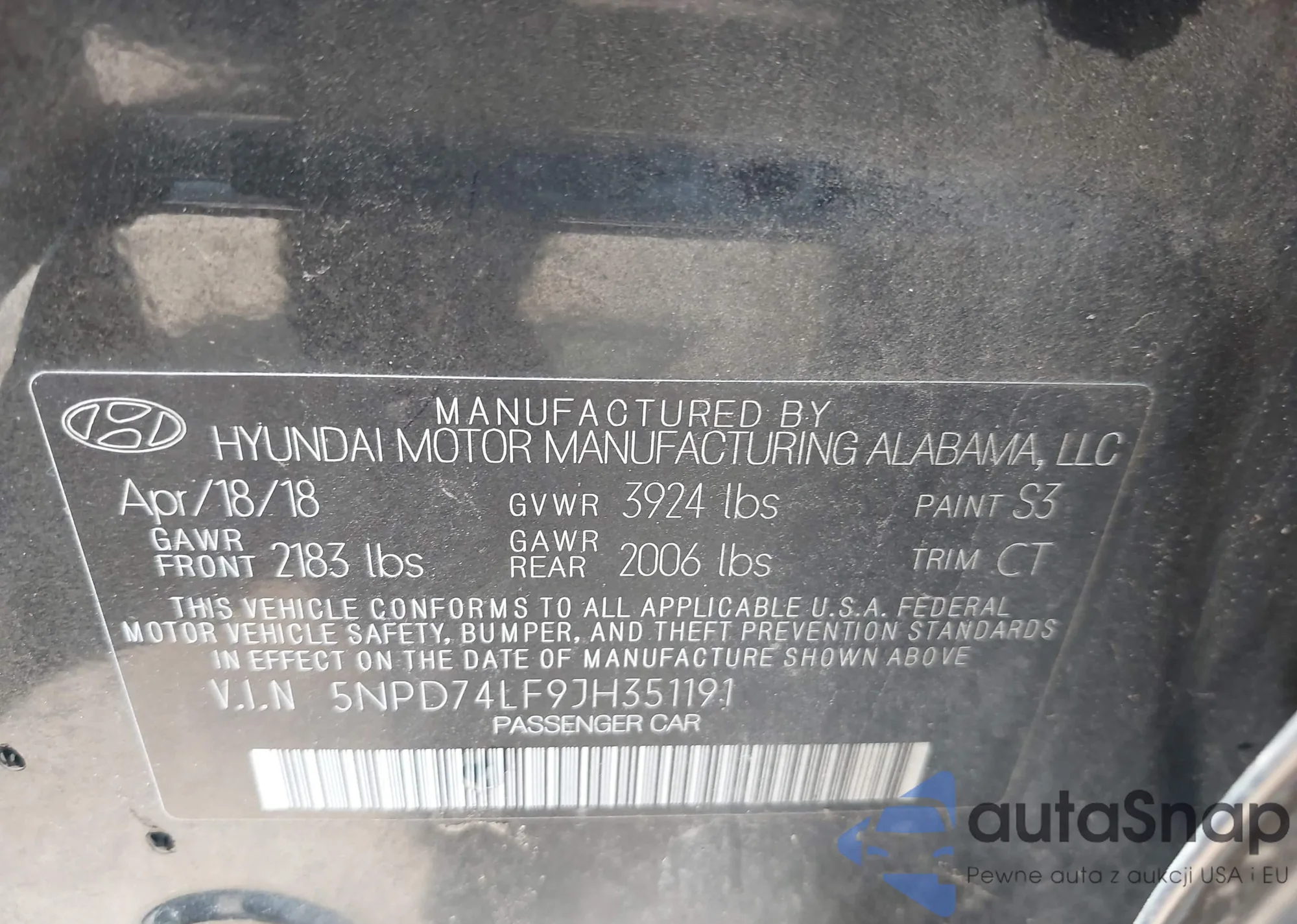 • VIN 5NPD74LF9JH351191