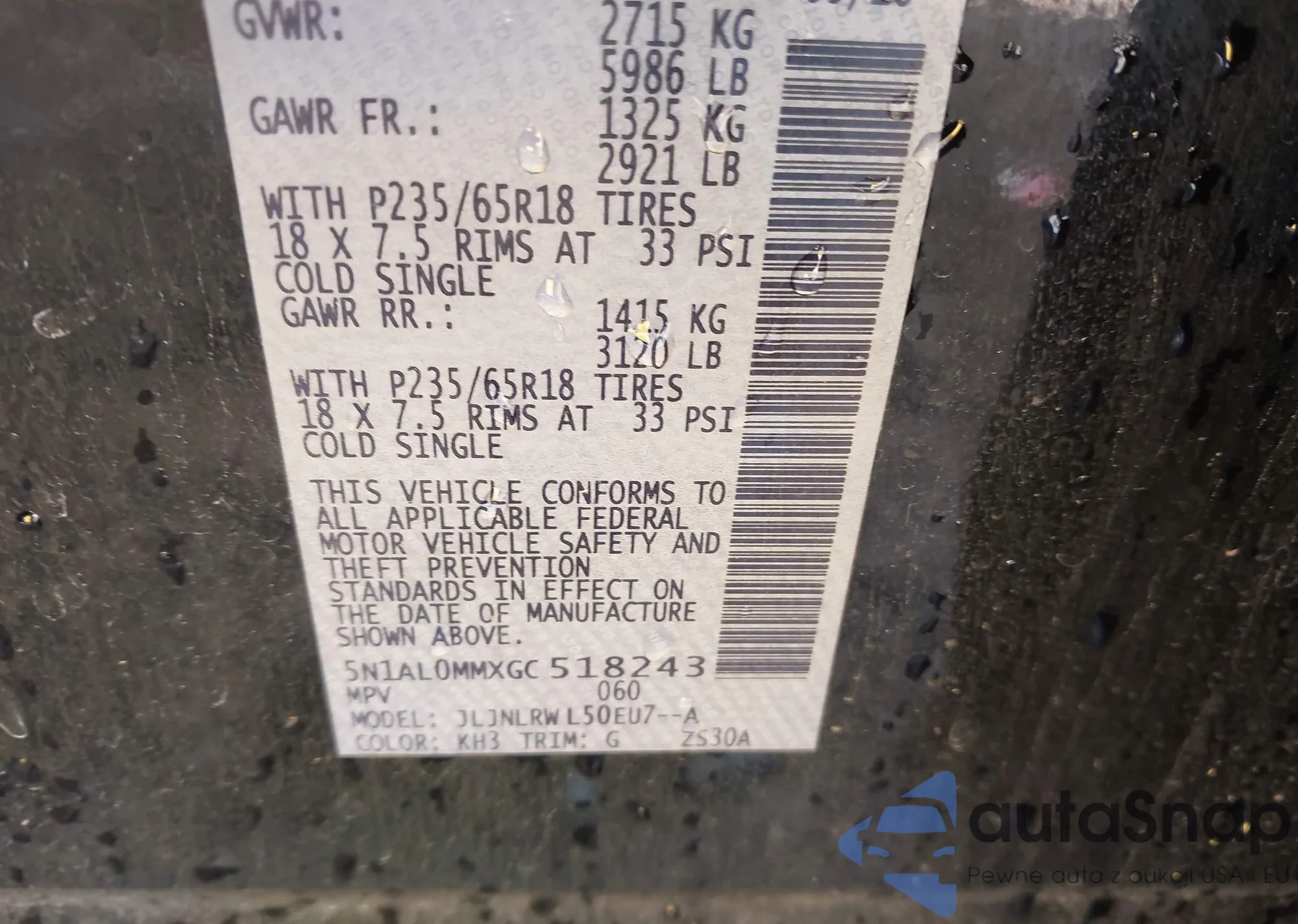 • VIN 5N1AL0MMXGC518243